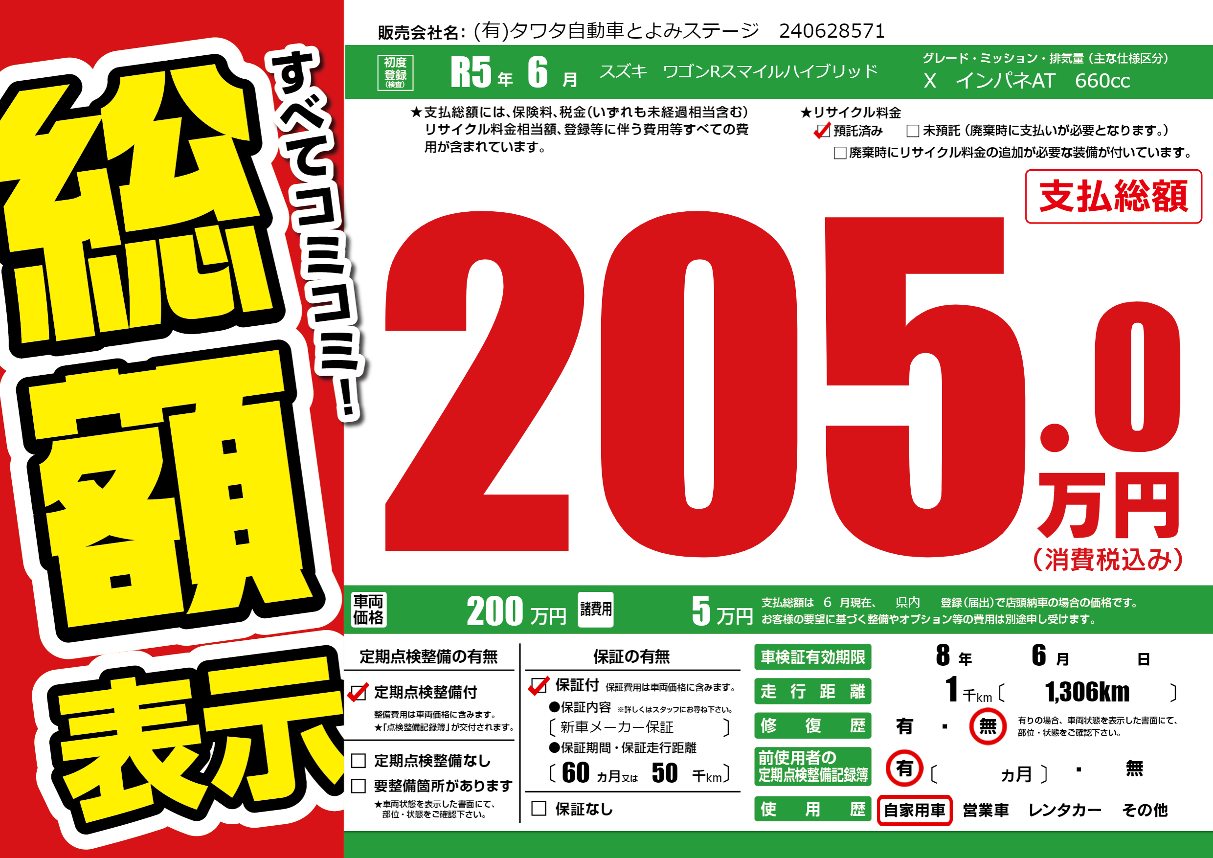 | 車名 | スズキ ワゴンRスマイルハイブリッド | グレード ミッション 排気量 |