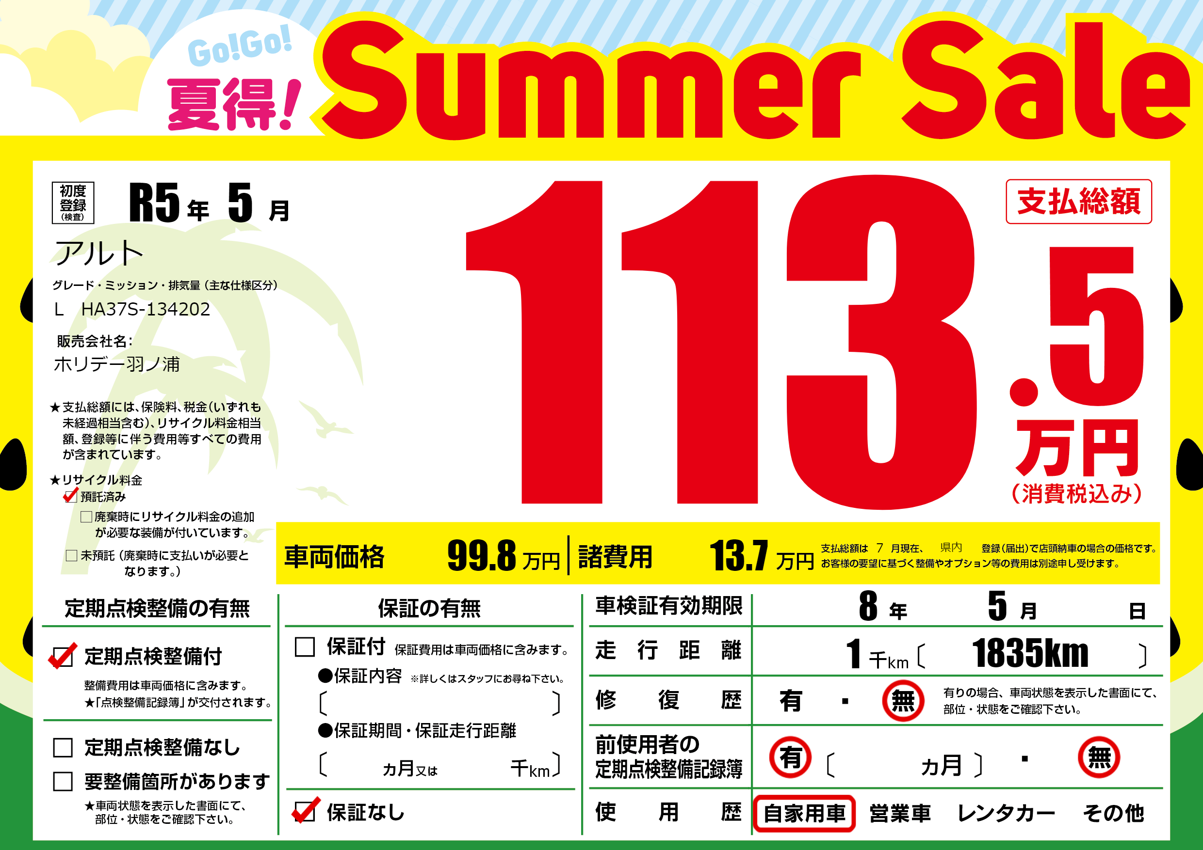 | 走行キロ | 0.1万km | 初年度登録 | R5年5月 |