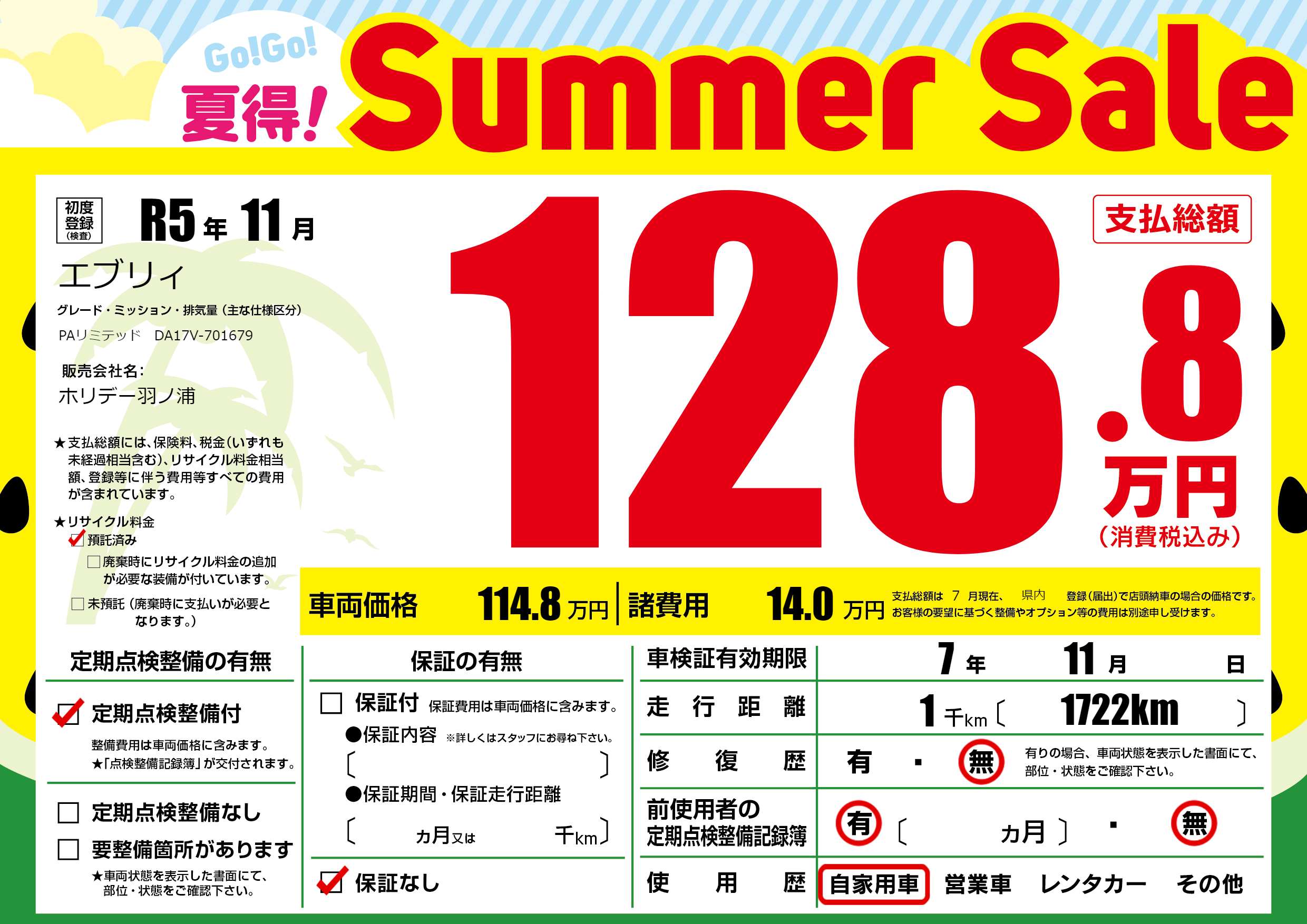 | 走行キロ | 0.1万km | 初年度登録 | R5年11月 |