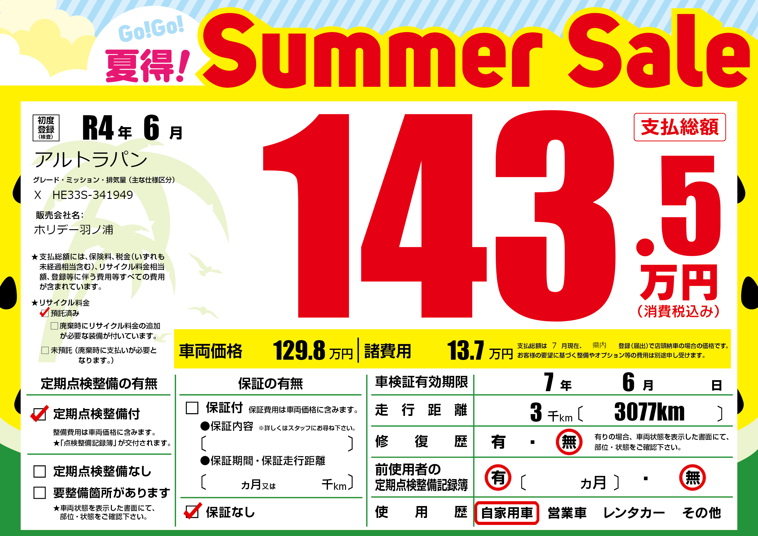 | 走行キロ | 0.3万km | 初年度登録 | R4年6月 |