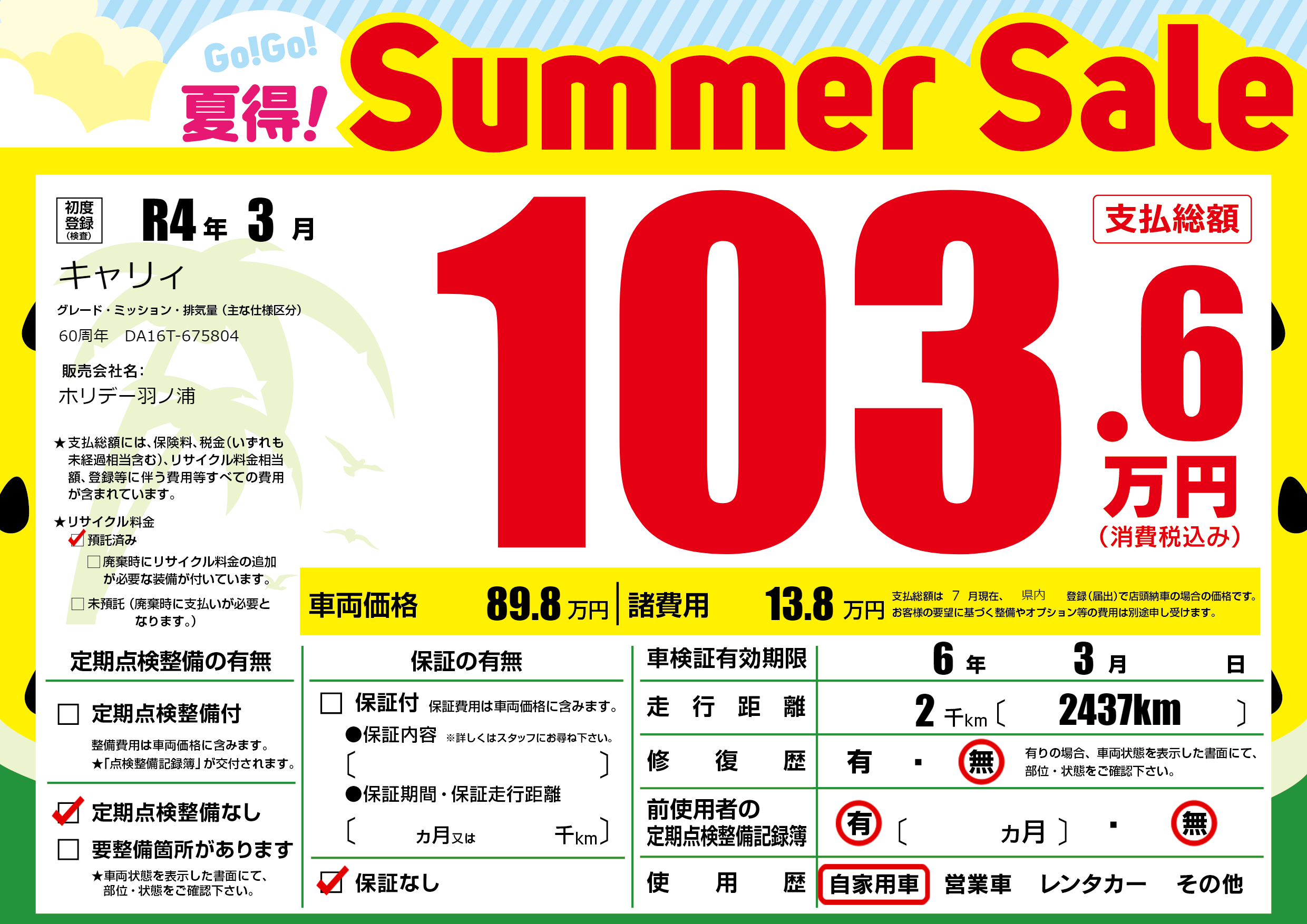 | 定期点検整備 | 定期点検整備なし | ||