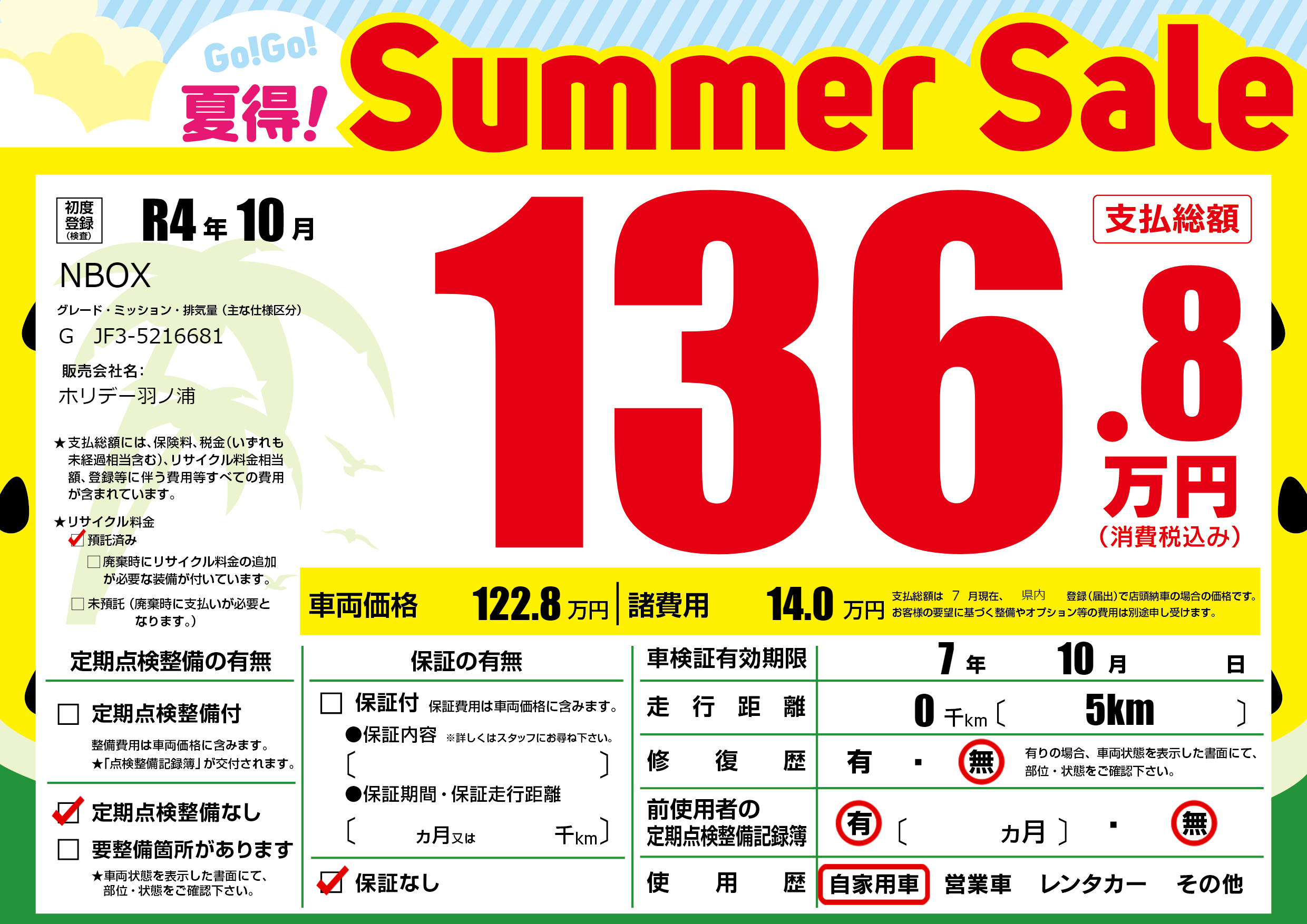 | 走行キロ | - | 初年度登録 | R4年10月 |