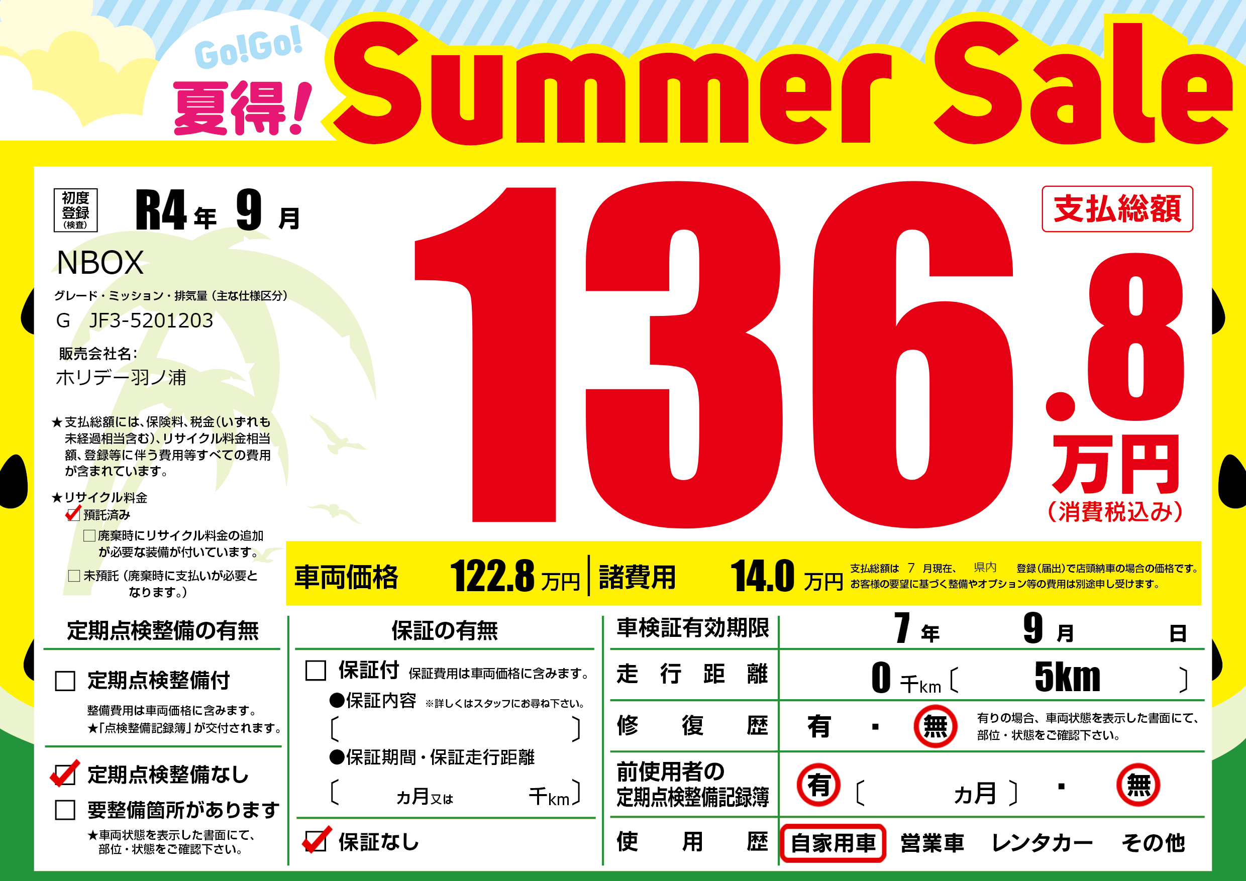 | 走行キロ | - | 初年度登録 | R4年9月 |