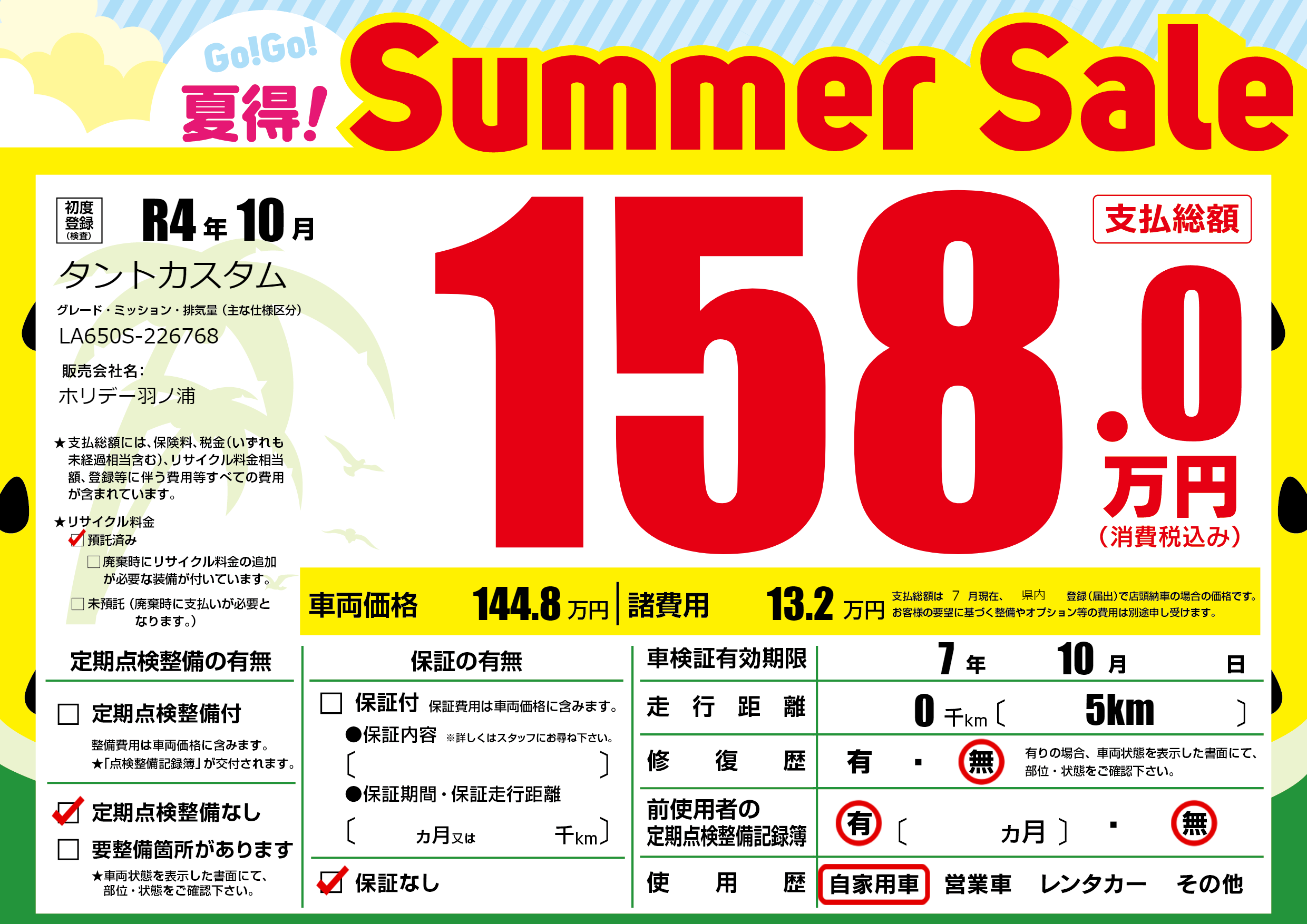 | 定期点検整備 | 定期点検整備なし | ||