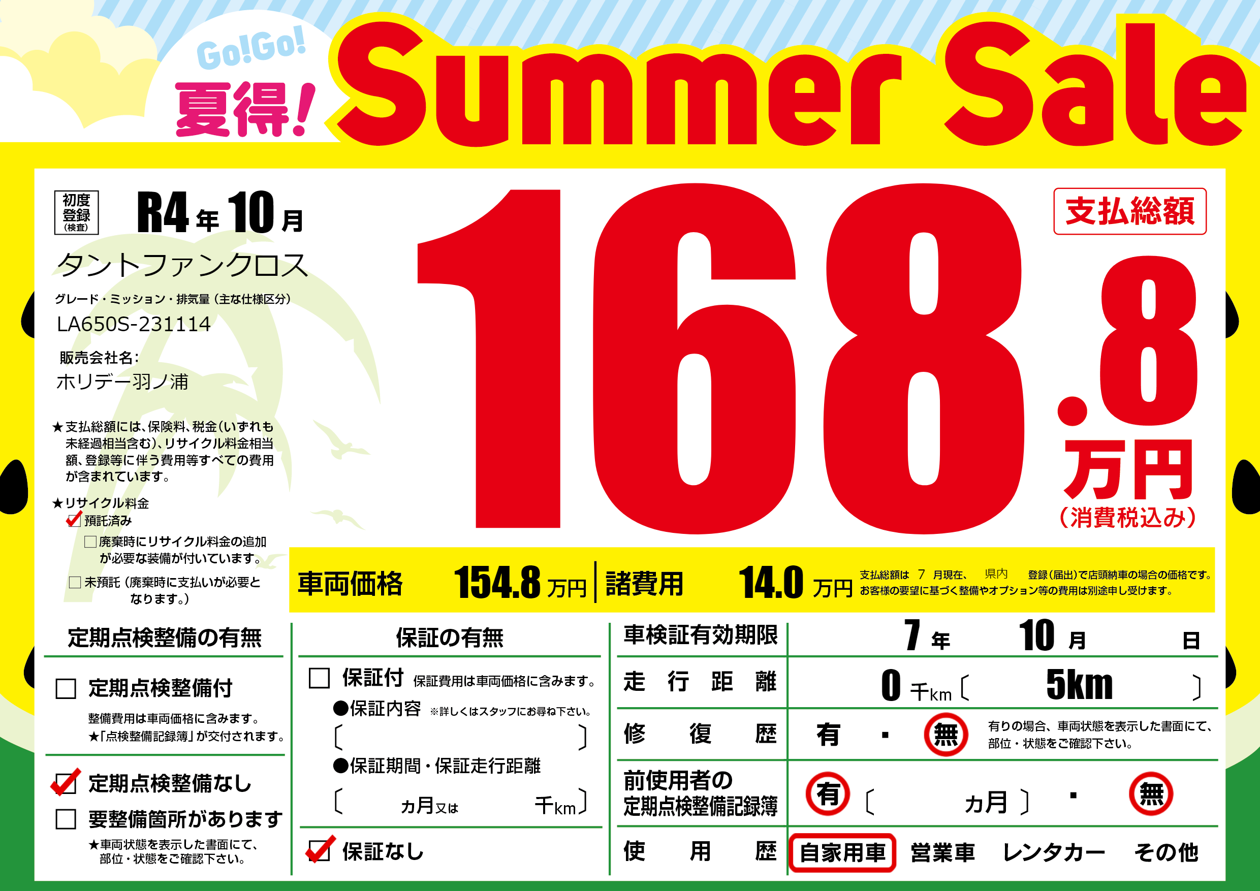 | 走行キロ | - | 初年度登録 | R4年10月 |