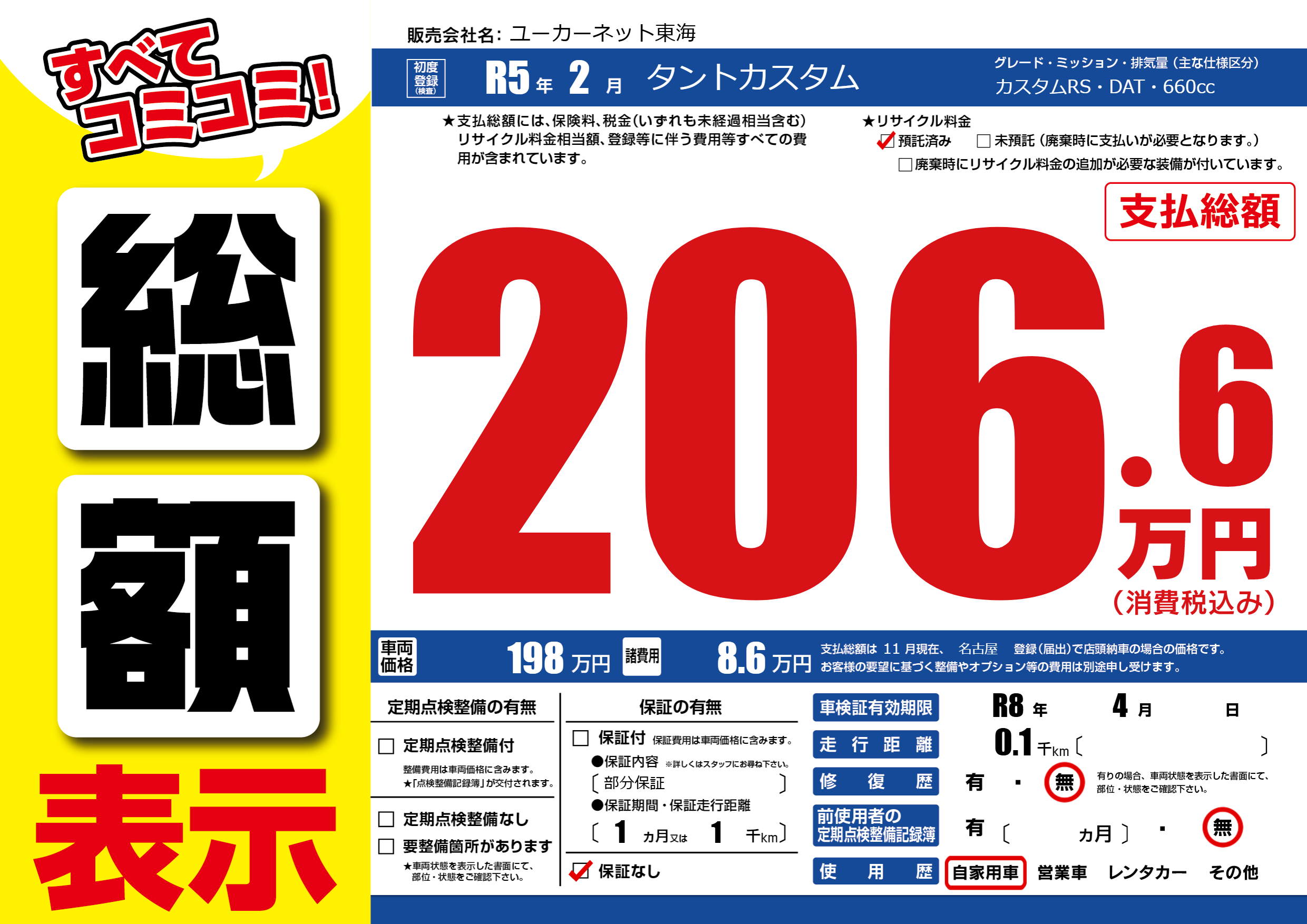 | 車名 | タントカスタム | グレード ミッション 排気量 |