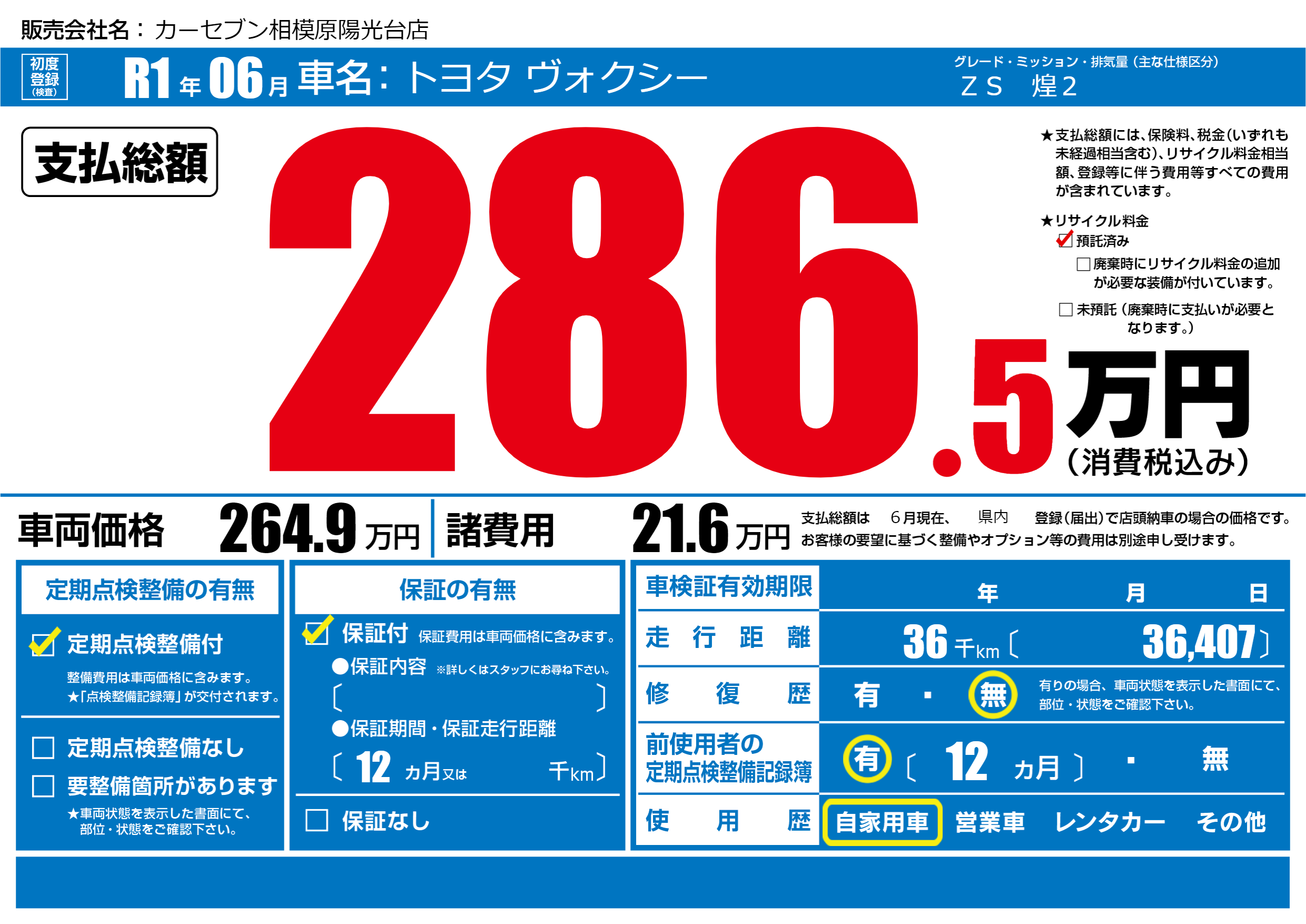 | 定期点検整備 | 定期点検整備あり | ||