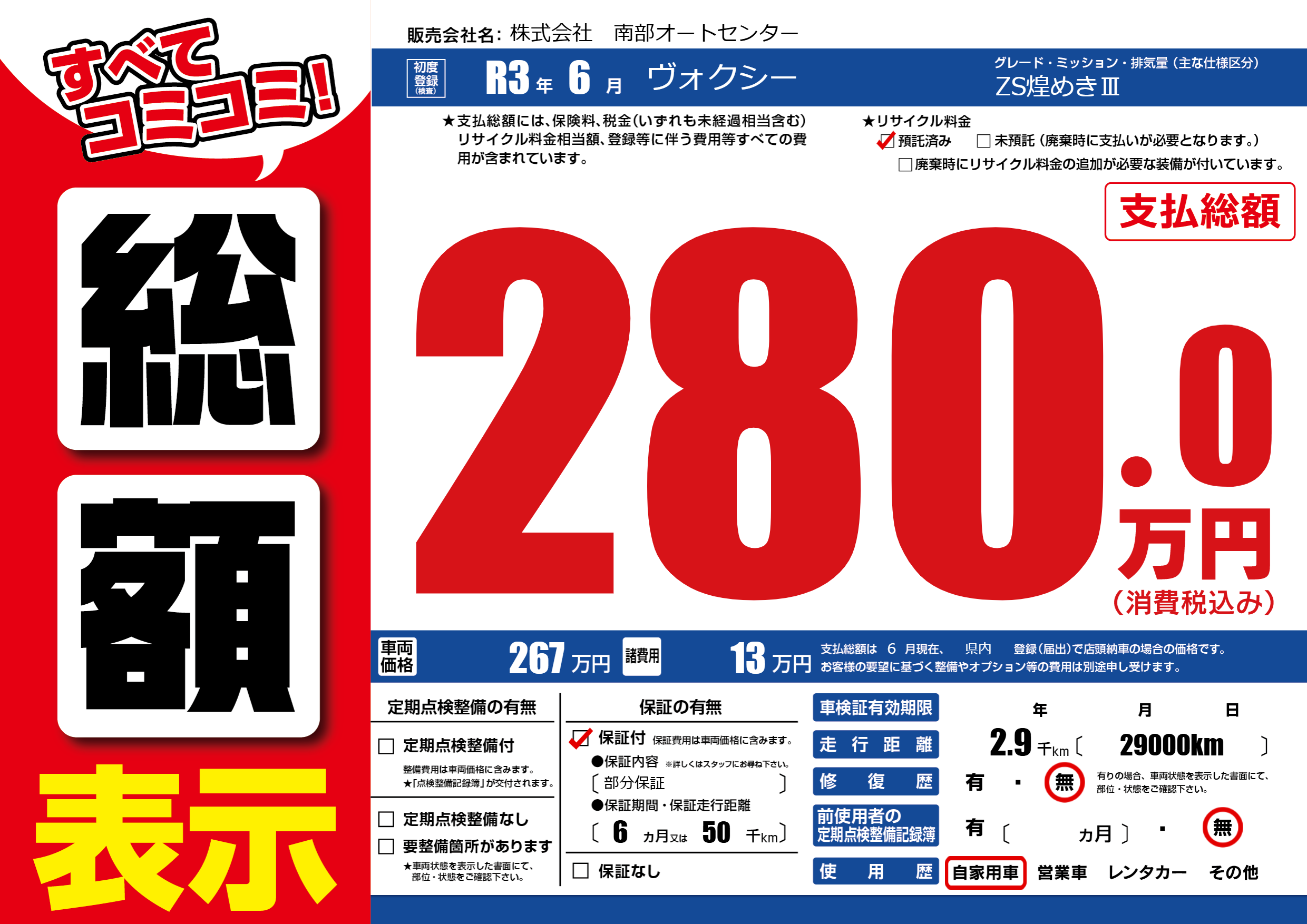 保証付き 保証内容(部分保証) 6ヶ月または(50)千kmまで |