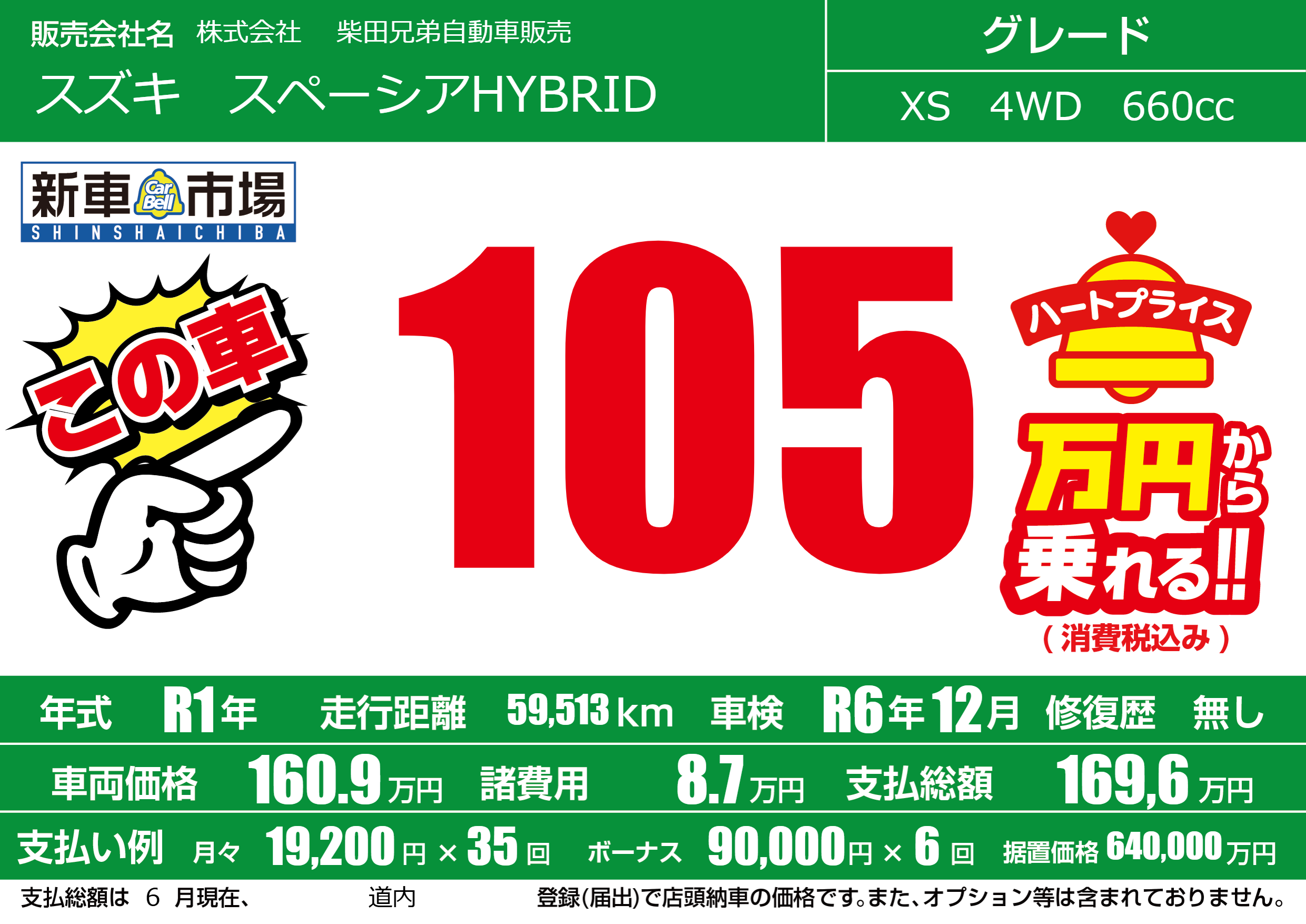 | 車名 | スズキ スペーシアHYBRID | グレード ミッション 排気量 |