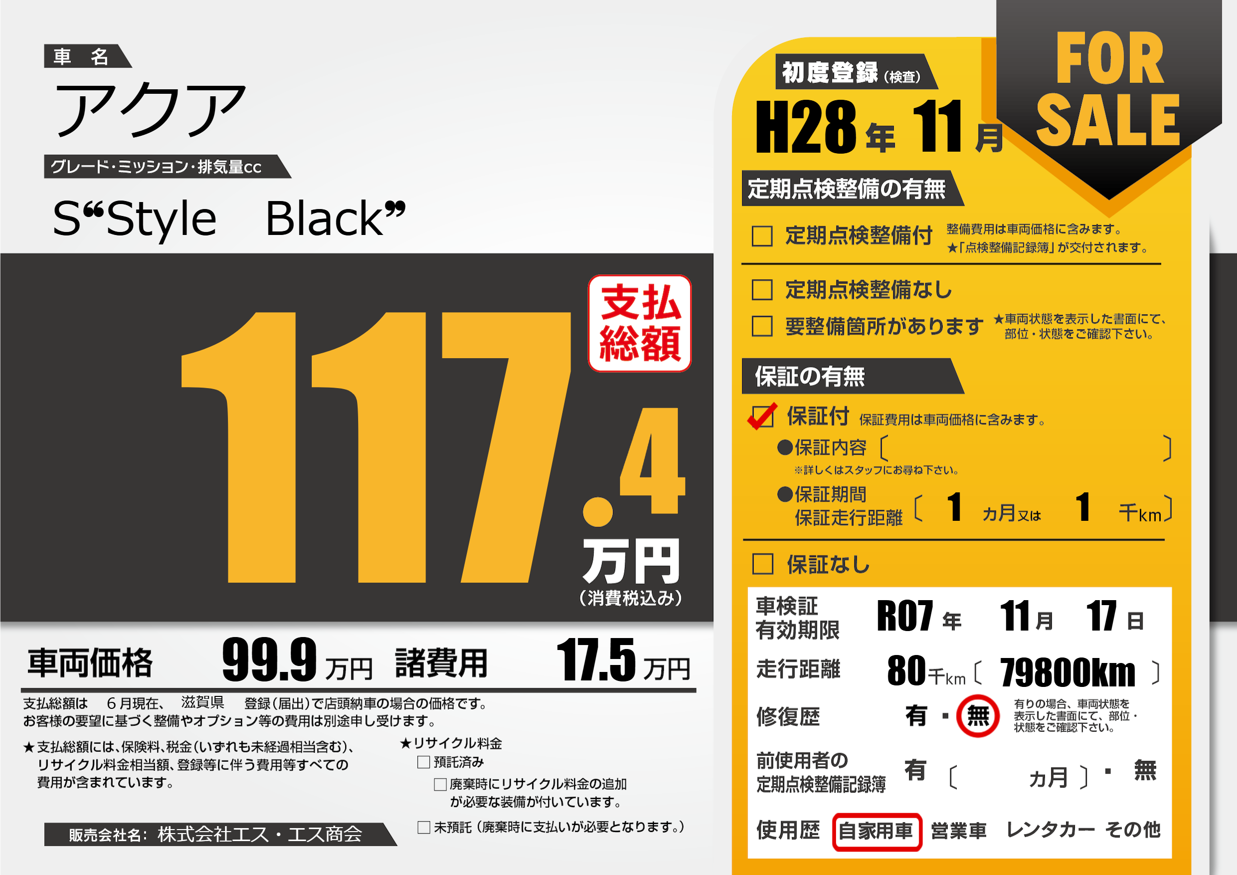なし | 車検制限 | R07年11月17月 |