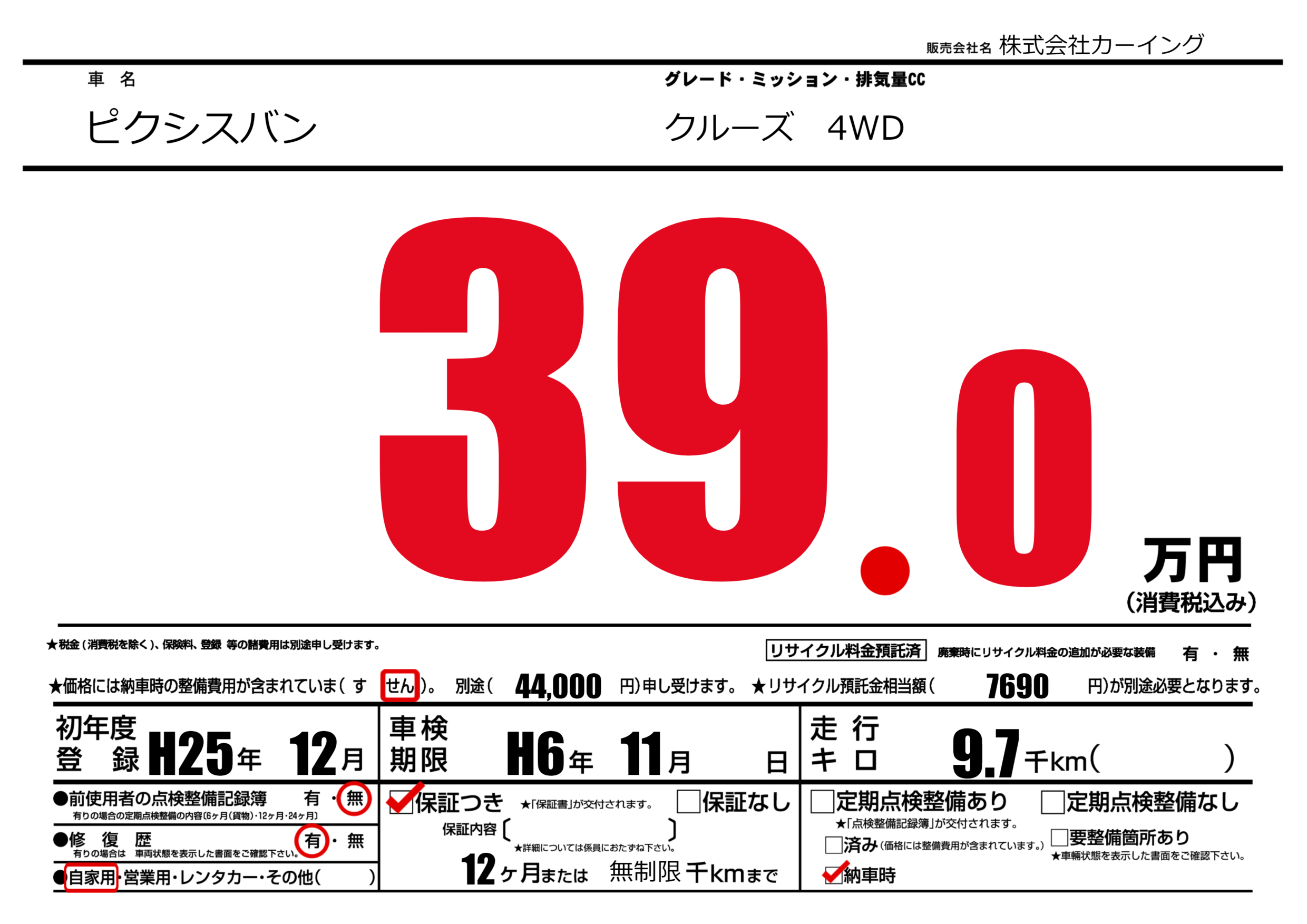 | 定期点検整備 | 納車時あり | ||