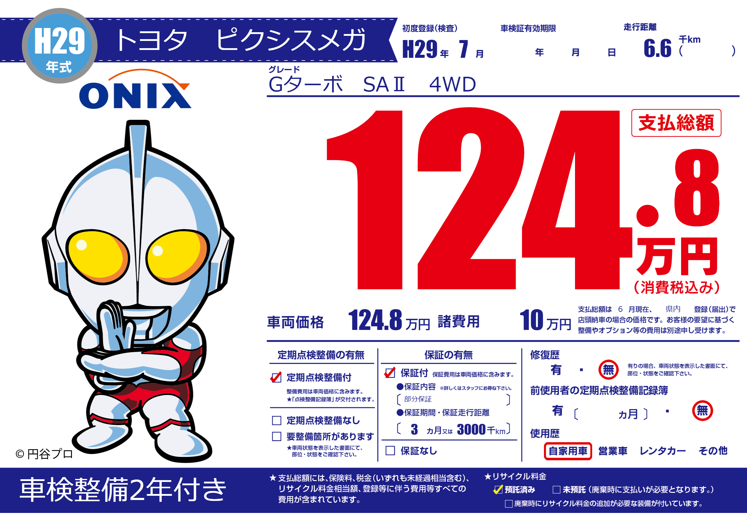 | 走行キロ | 0.6万km | 初年度登録 | H29年7月 |