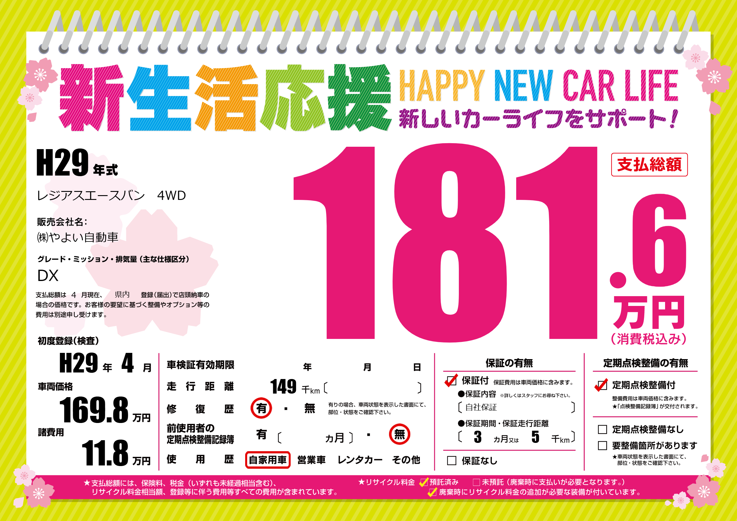 | 車名 | レジアスエースバン 4WD | グレード ミッション 排気量 |