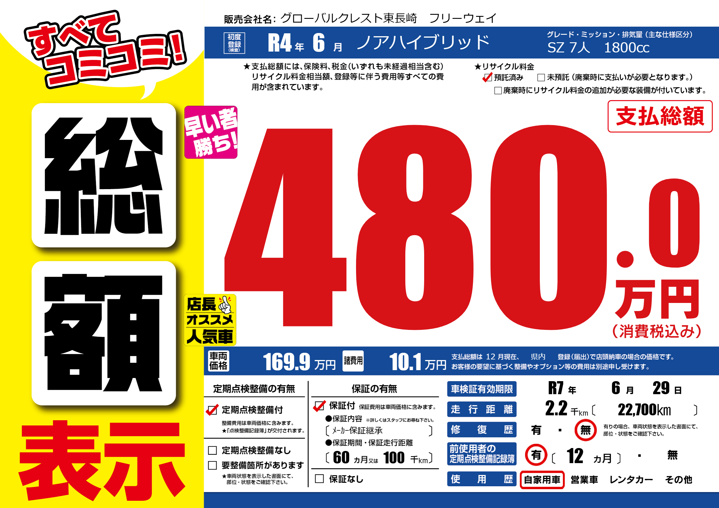 | 走行キロ | 0.2万km | 初年度登録 | R4年6月 |