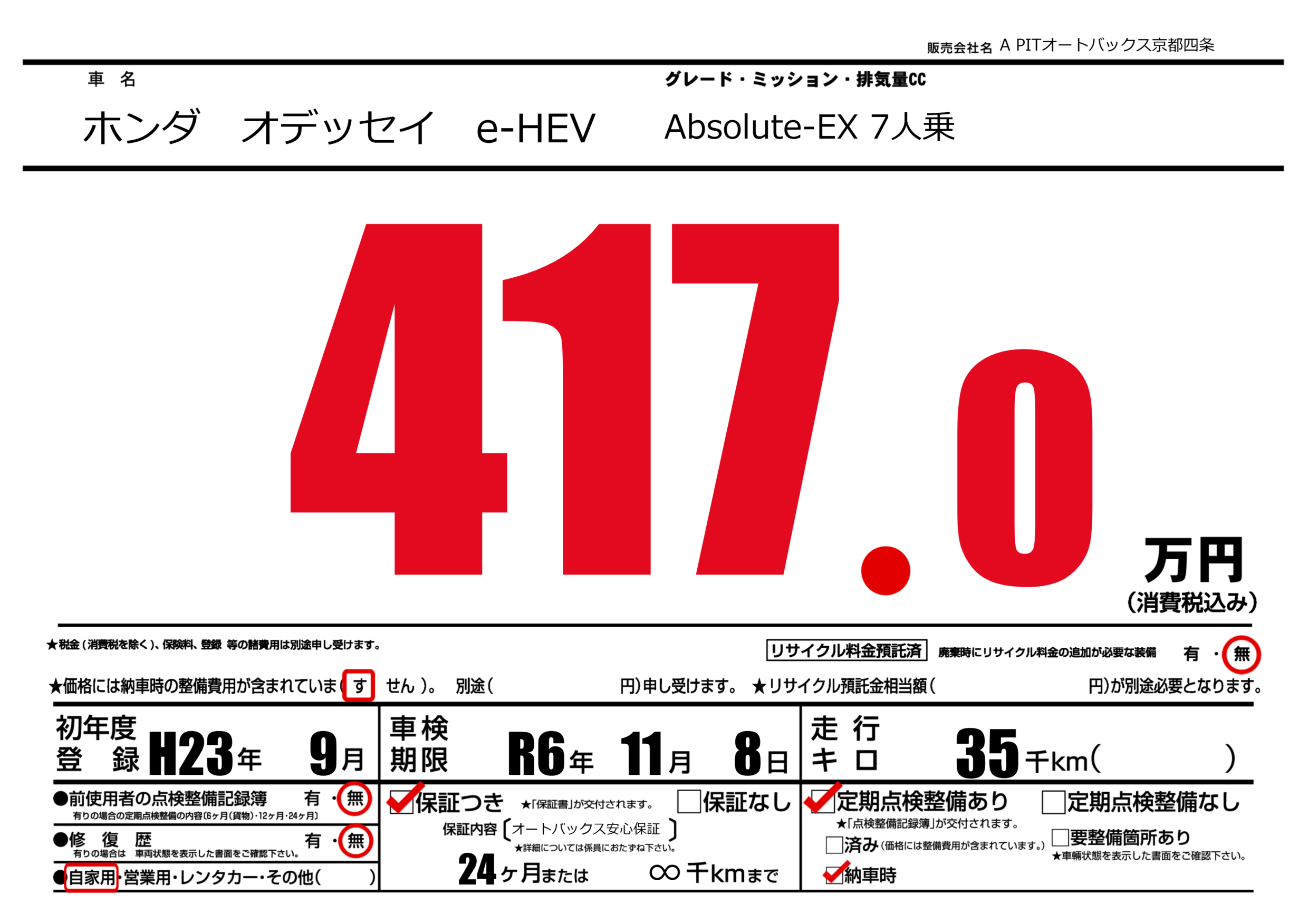 | 初年度登録 | H23年9月 | ||