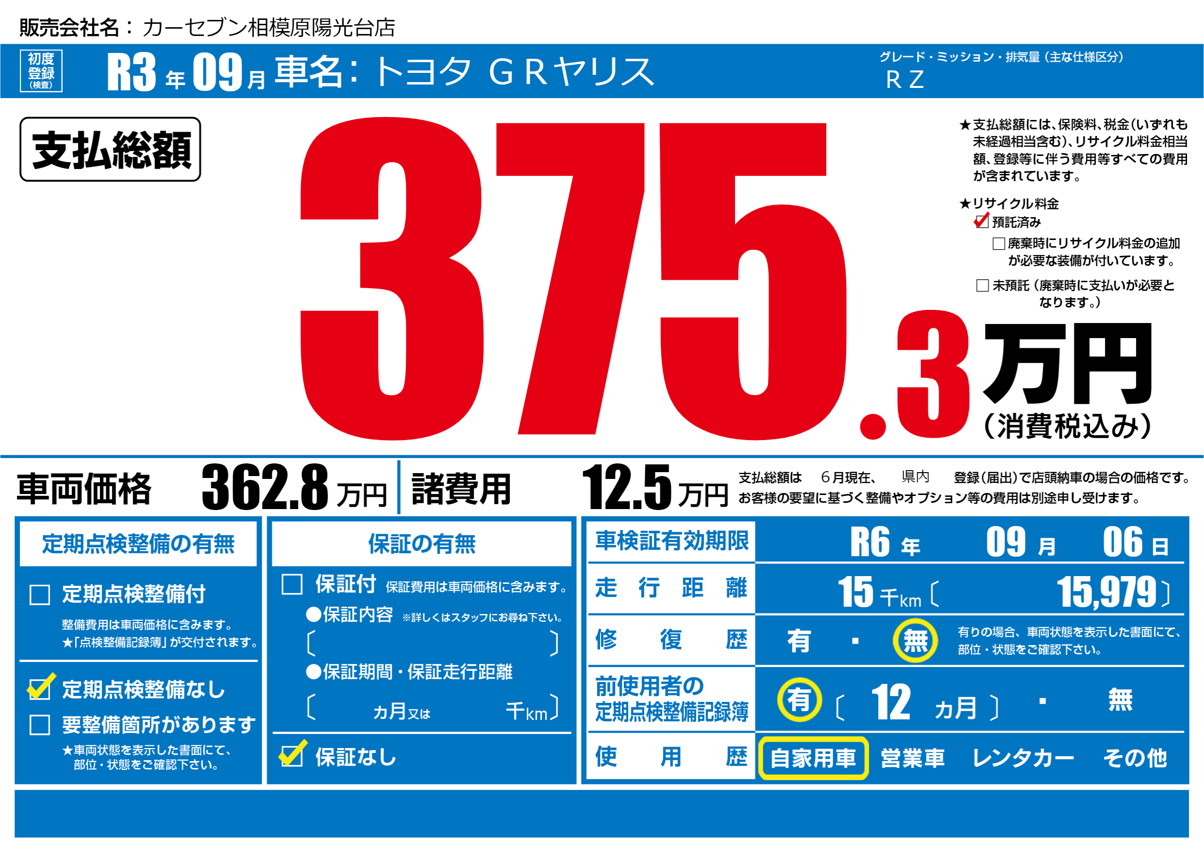 なし | 車検制限 | R6年09月06月 |