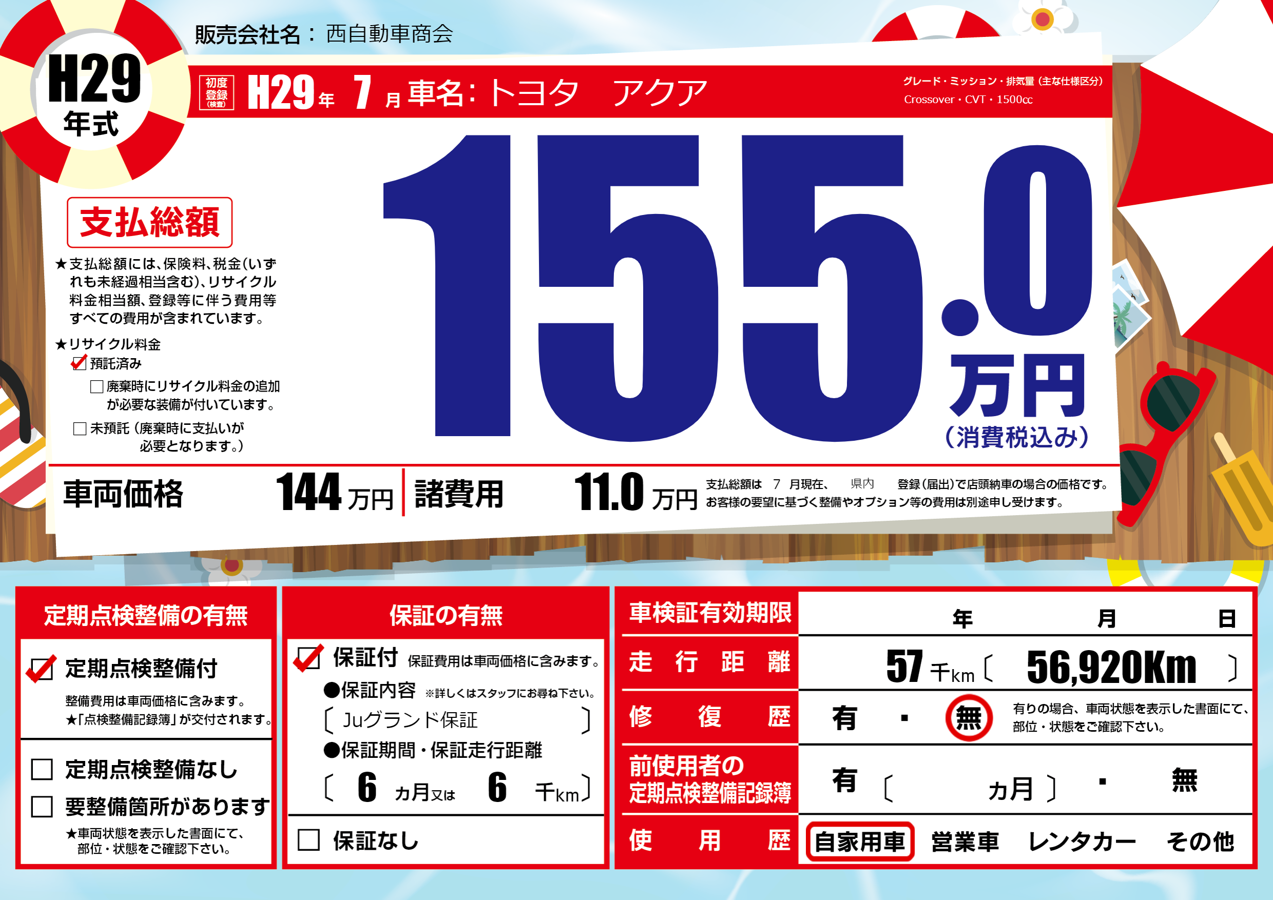 保証付き 保証内容(Juグランド保証) 6ヶ月または6千km |