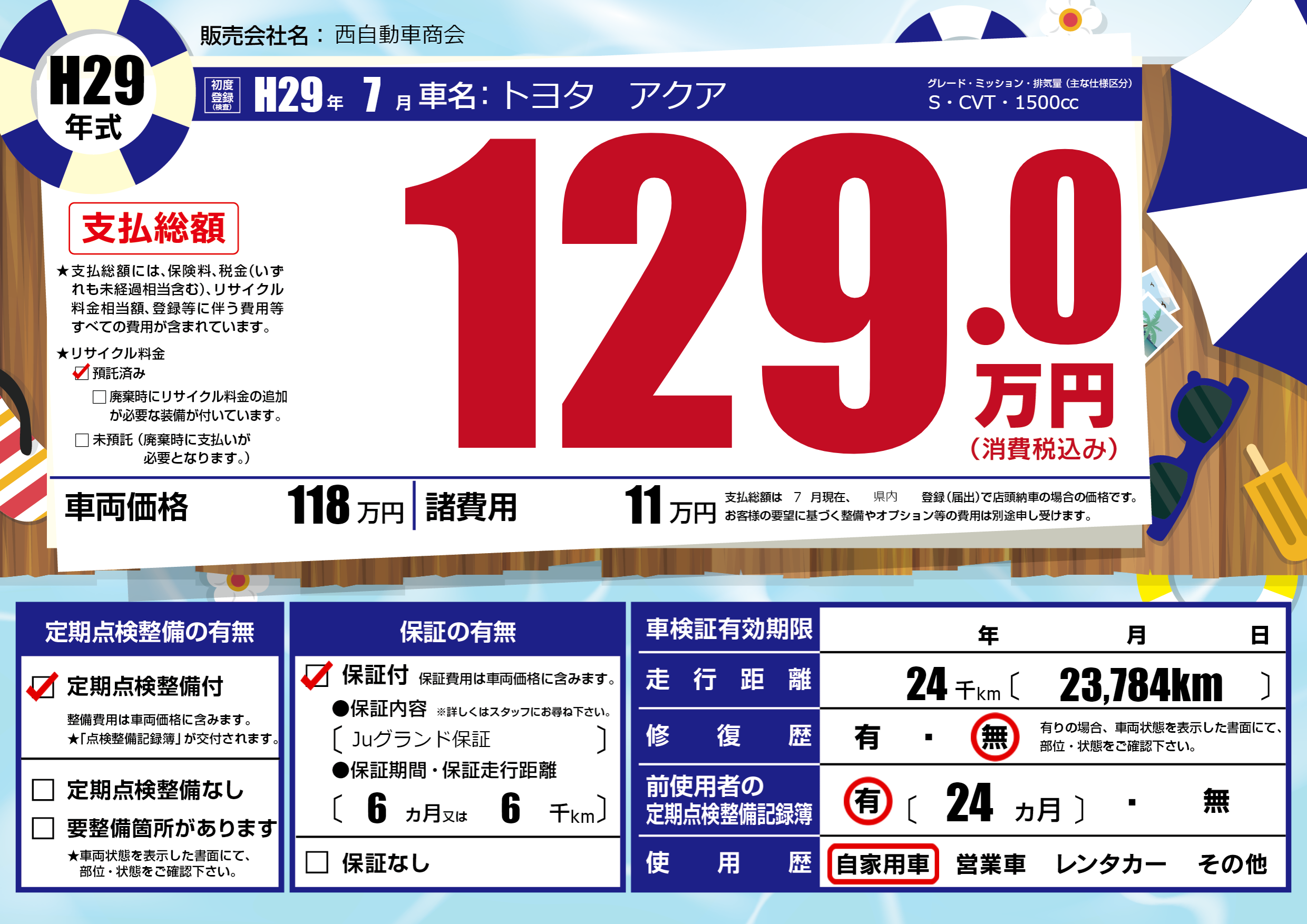 保証付き 保証内容(Juグランド保証) 6ヶ月または6千km |