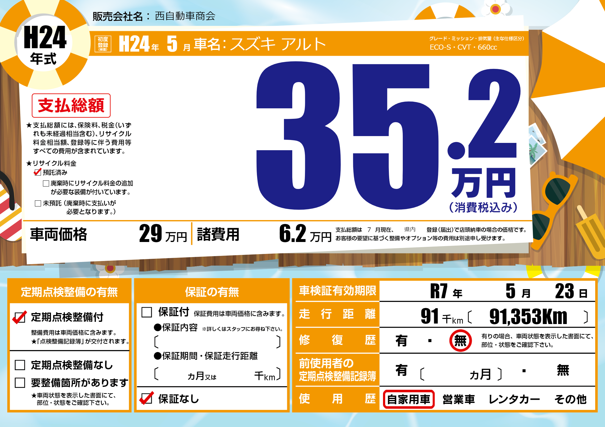 なし | 車検制限 | R7年5月23月 |