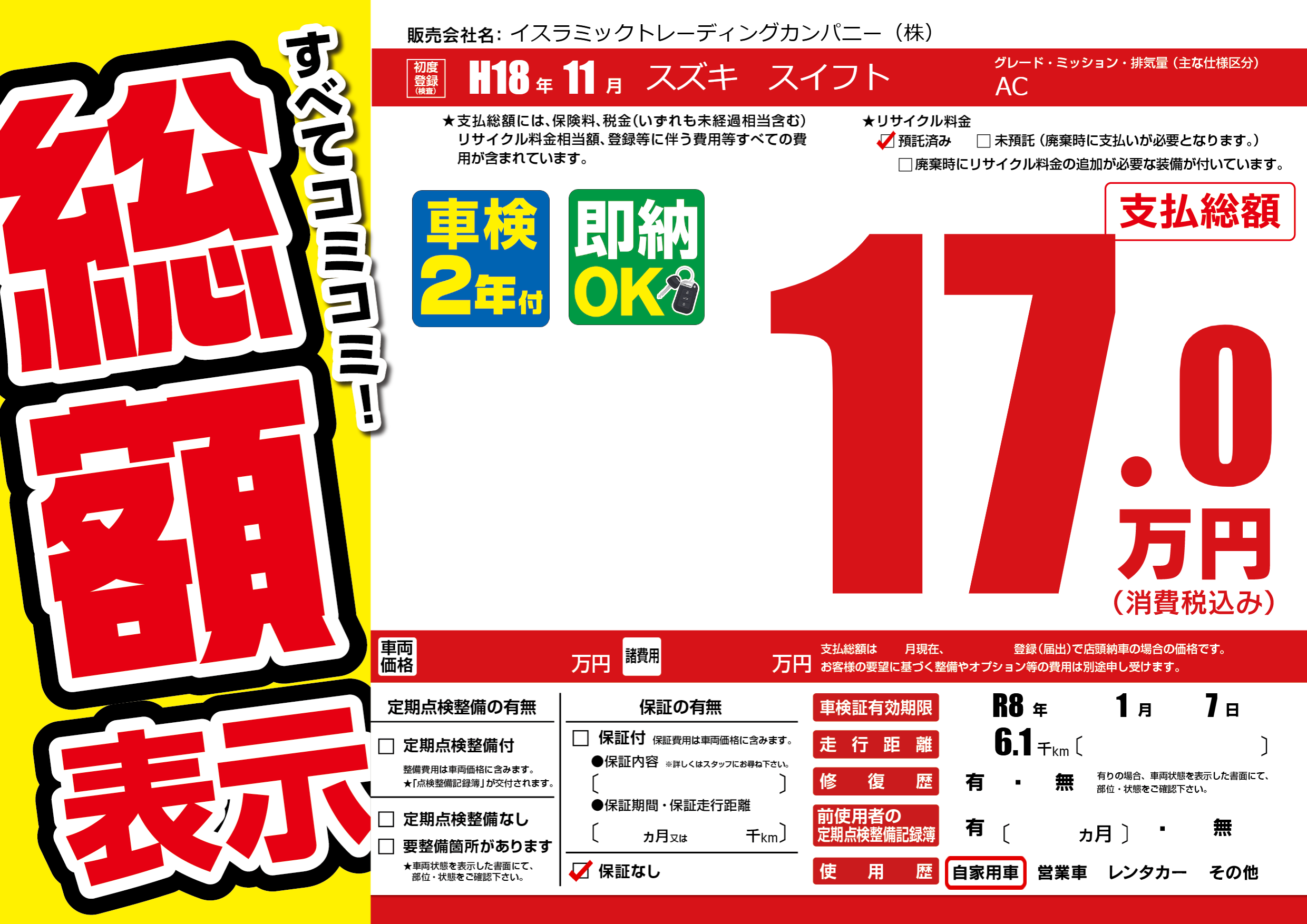 | 車検制限 | R8年 1月 7日 | ||