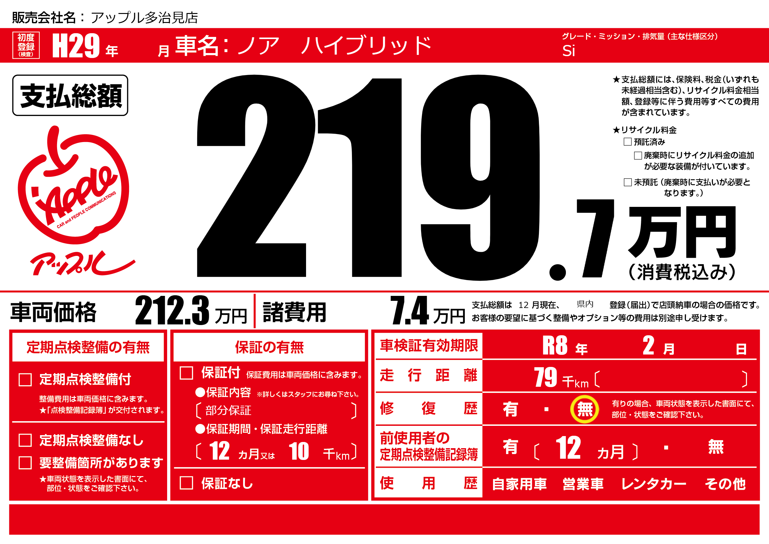 | 走行キロ | 7.9万km | 初年度登録 | H29年---月 |