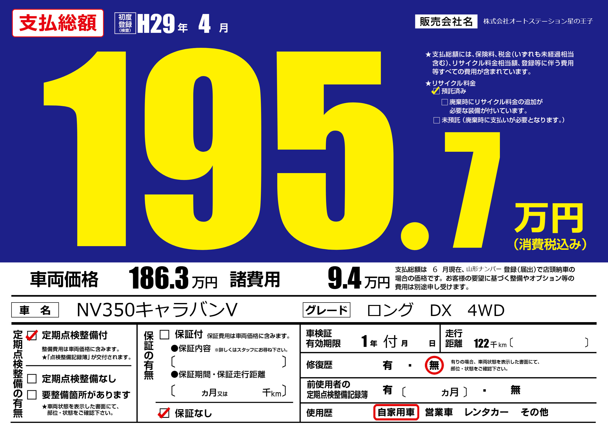 | 走行キロ | 12.2万km | 初年度登録 | H29年4月 |