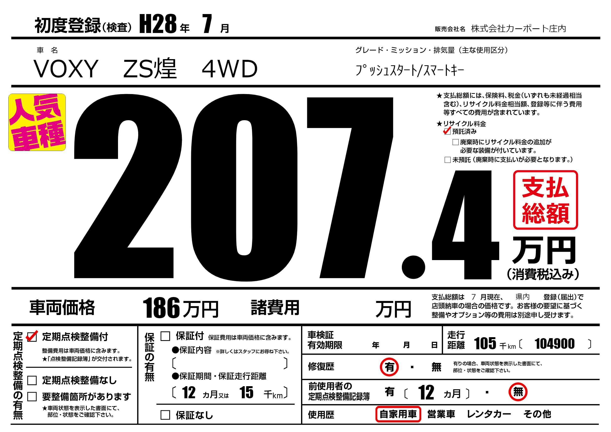| 定期点検整備 | 定期点検整備あり | ||