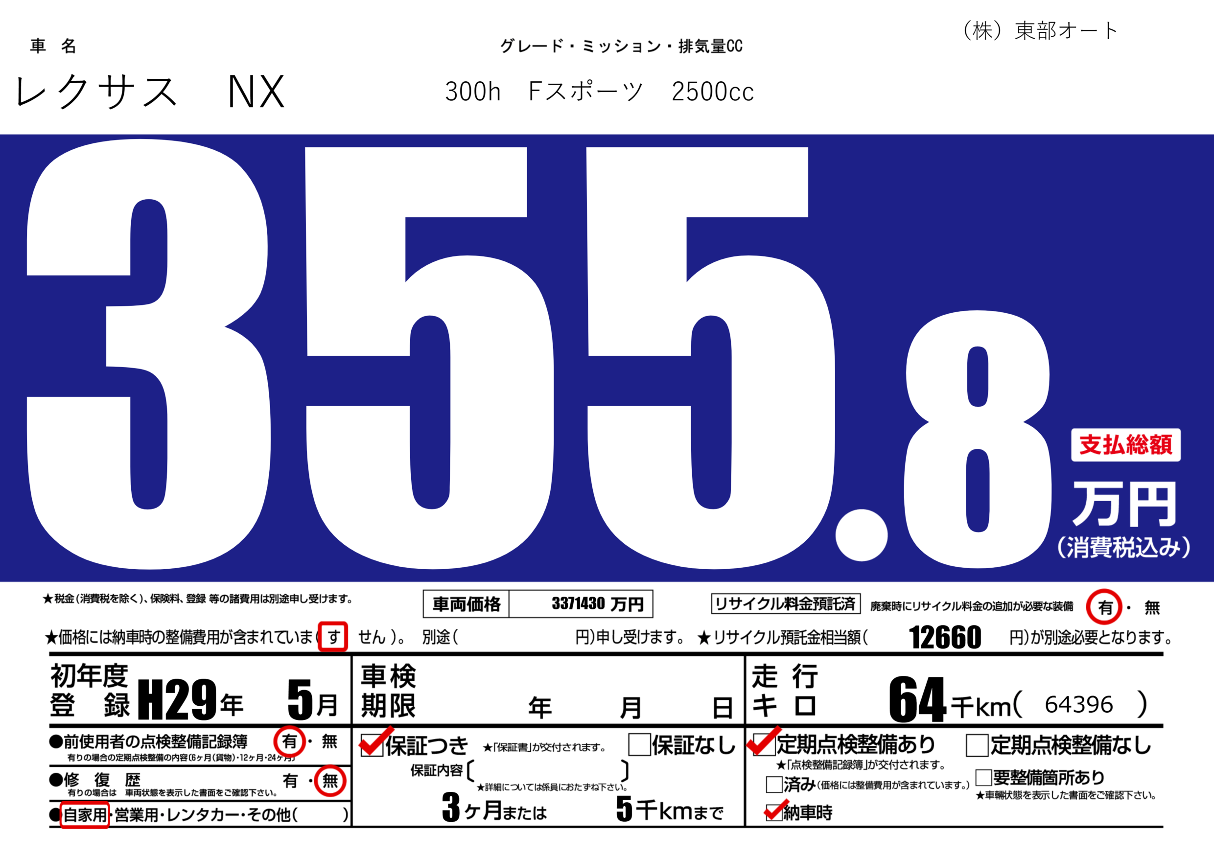 保証付き 保証内容(---) 3ヶ月または(5)千kmまで |