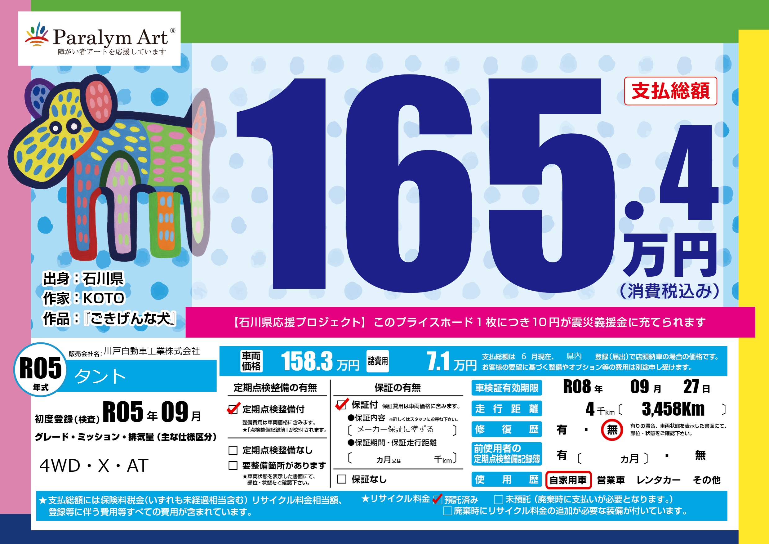 | 走行キロ | 0.4万km | 初年度登録 | R05年09月 |