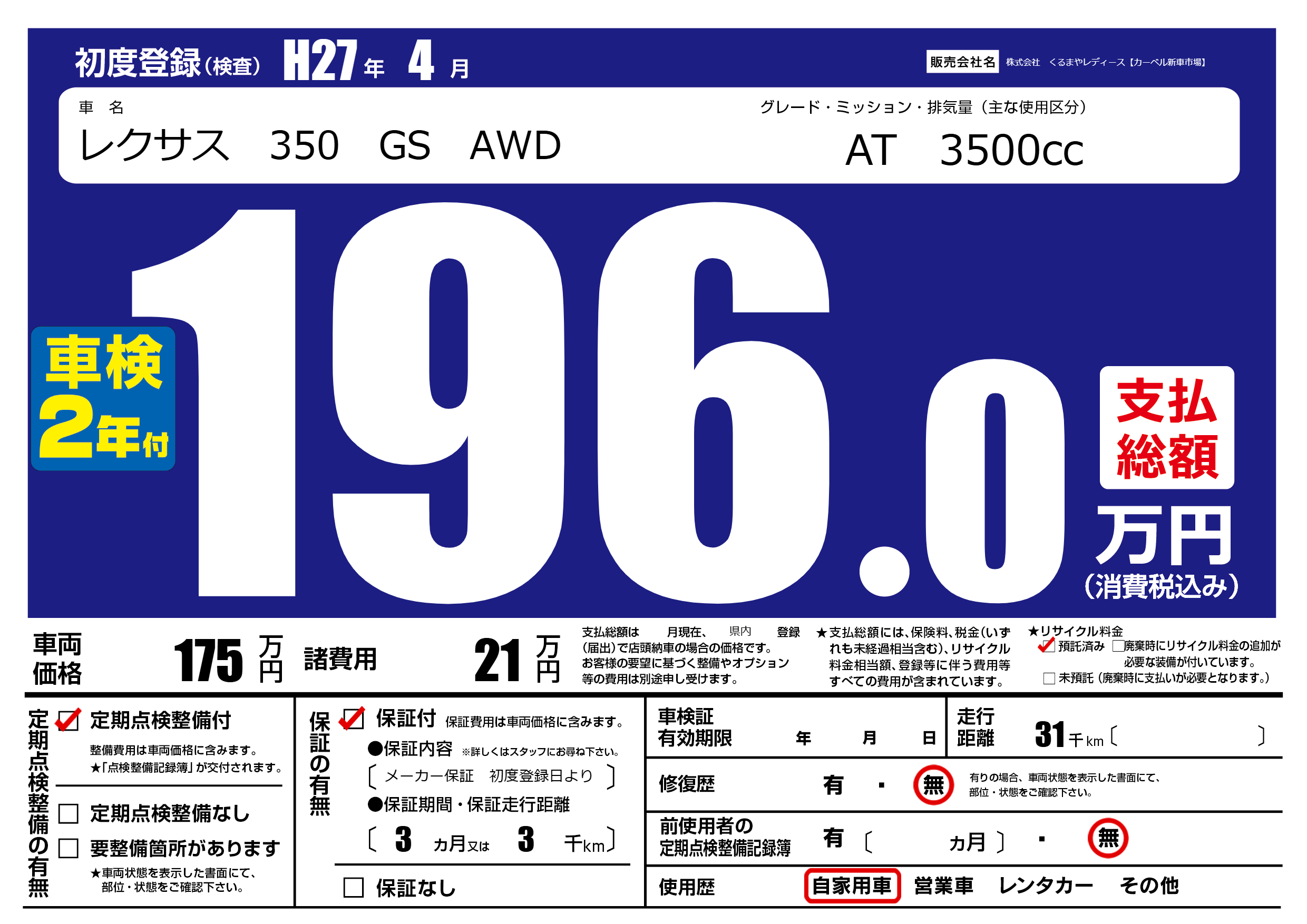 | 定期点検整備 | 定期点検整備あり | ||