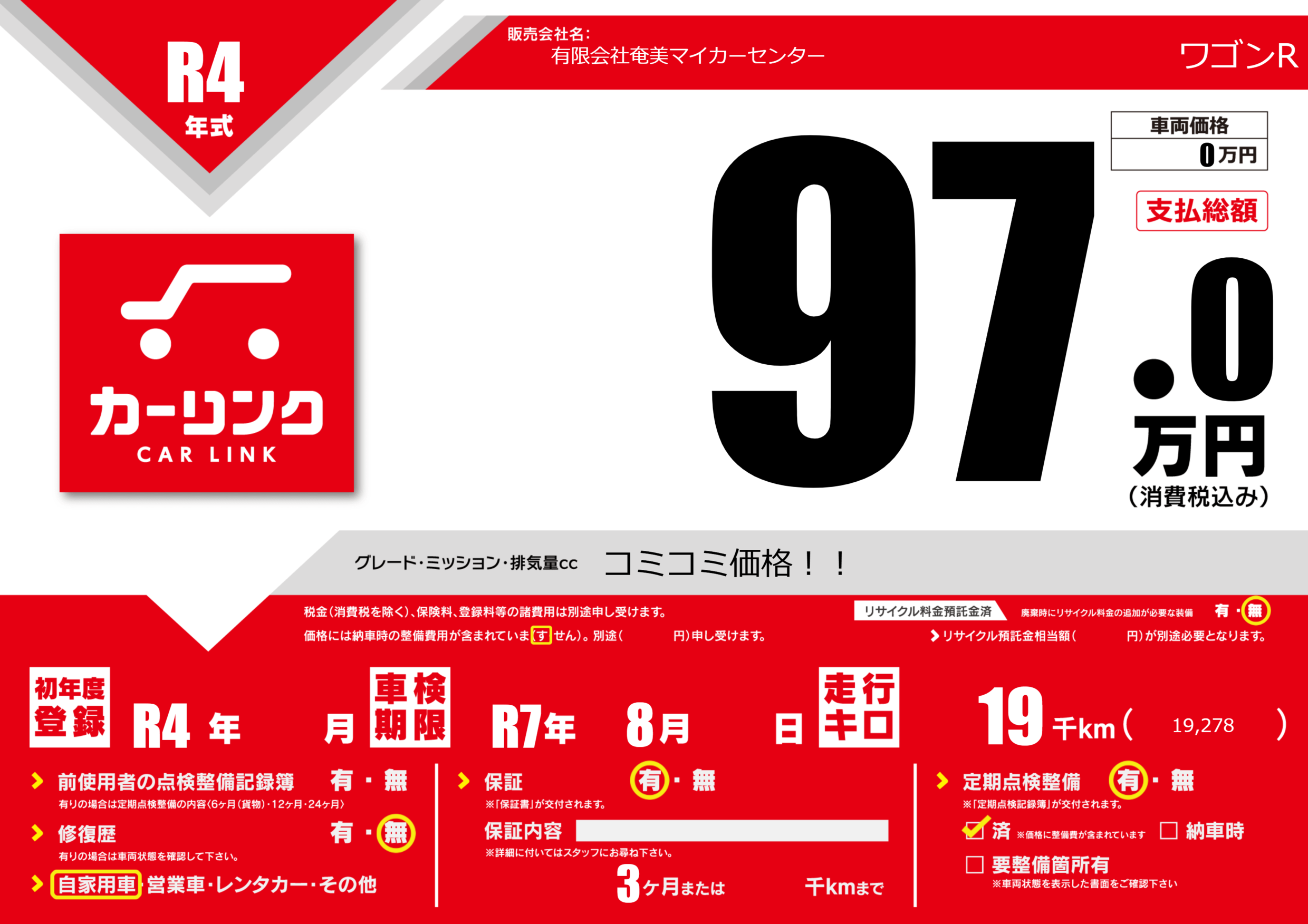 | 定期点検整備 | 定期点検整備あり 定期点検整備済み | ||