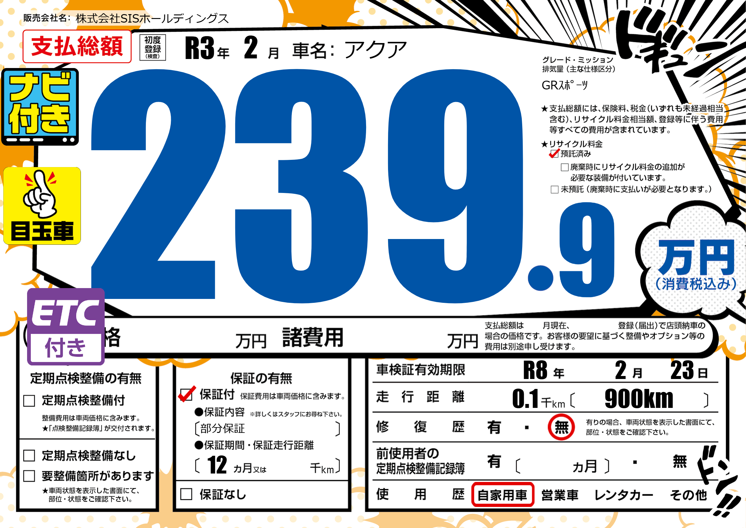 なし | 車検制限 | R8年2月23月 |