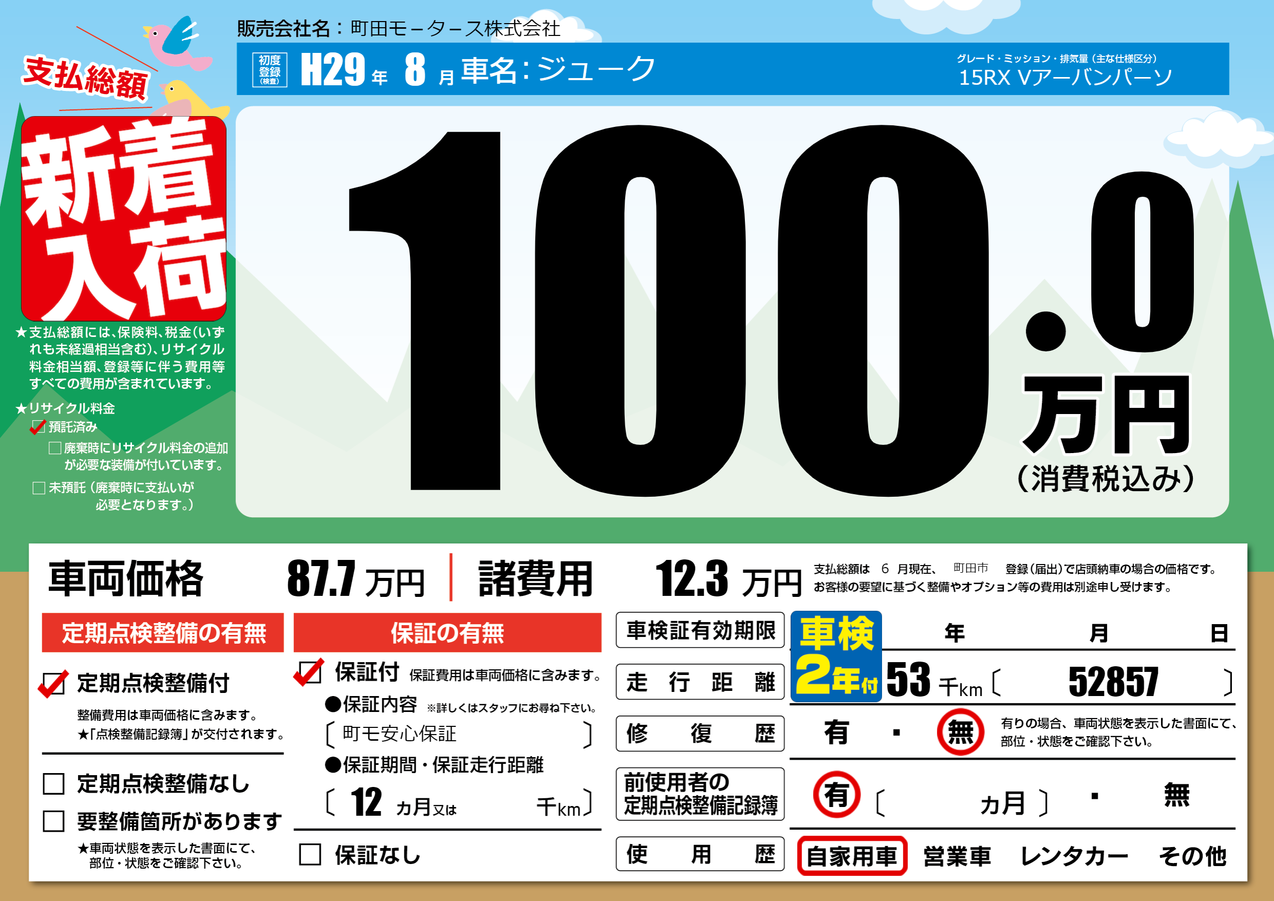 保証付き 保証内容(町モ安心保証) 12ヶ月または()千kmまで |