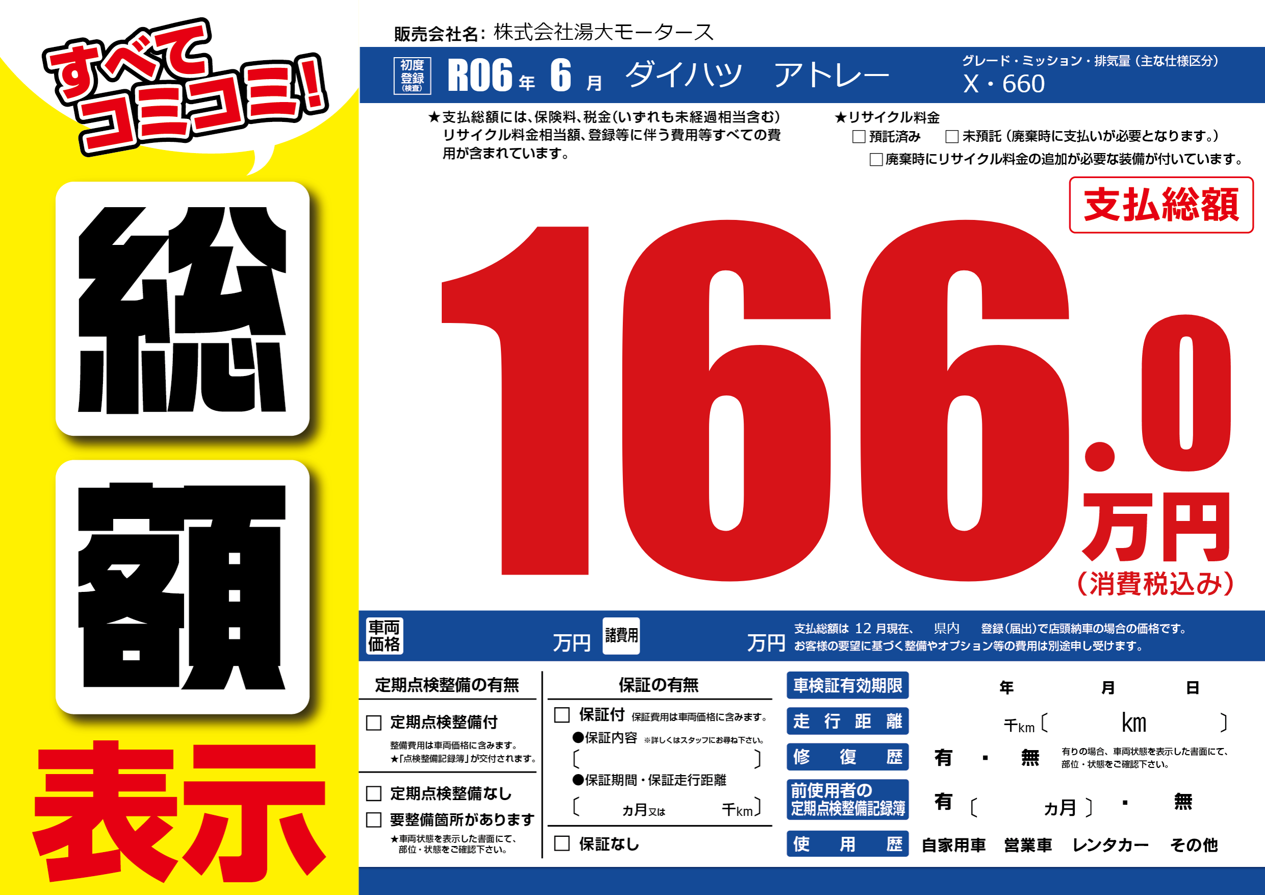 | 走行キロ | - | 初年度登録 | R06年6月 |