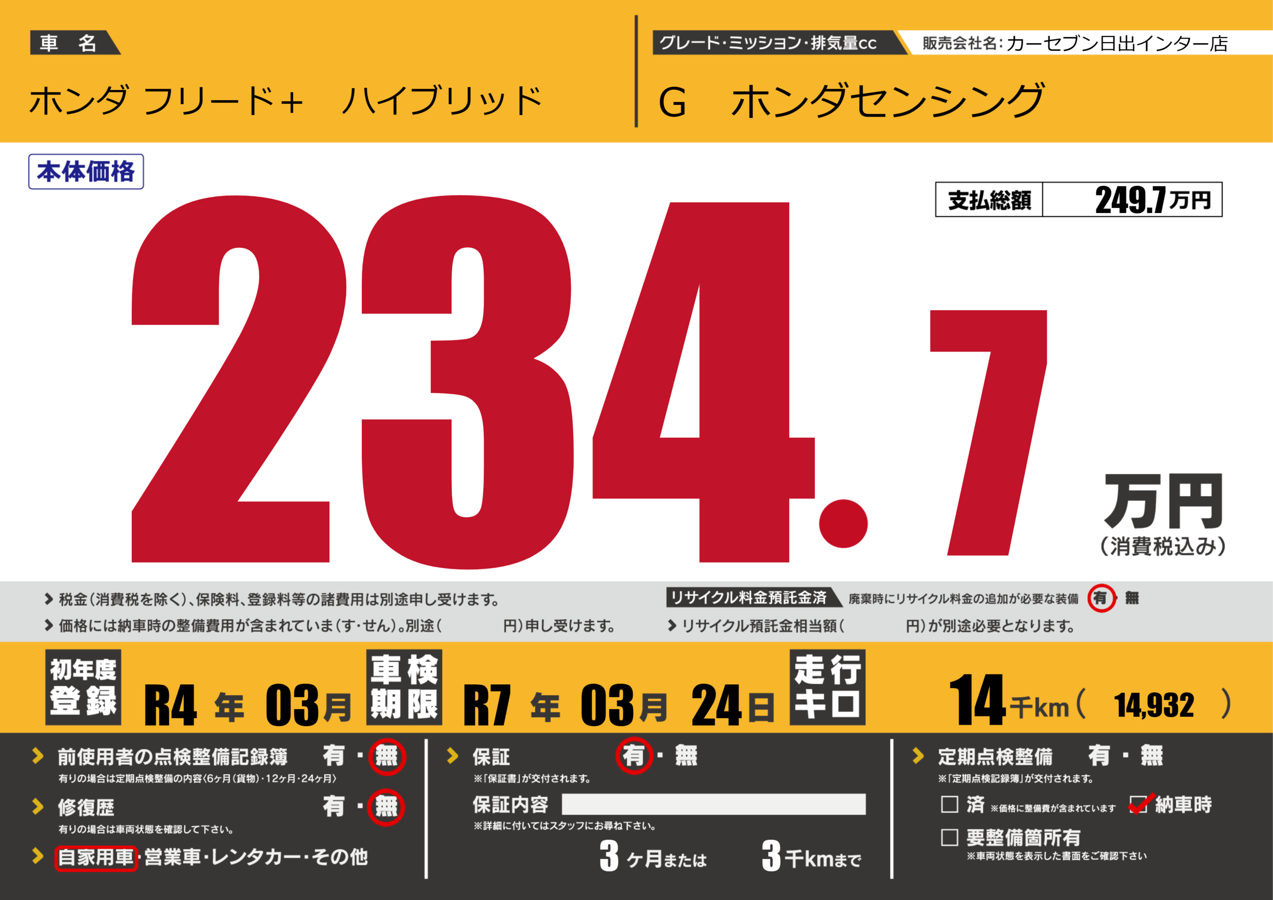 | 定期点検整備 | 納車時あり | ||