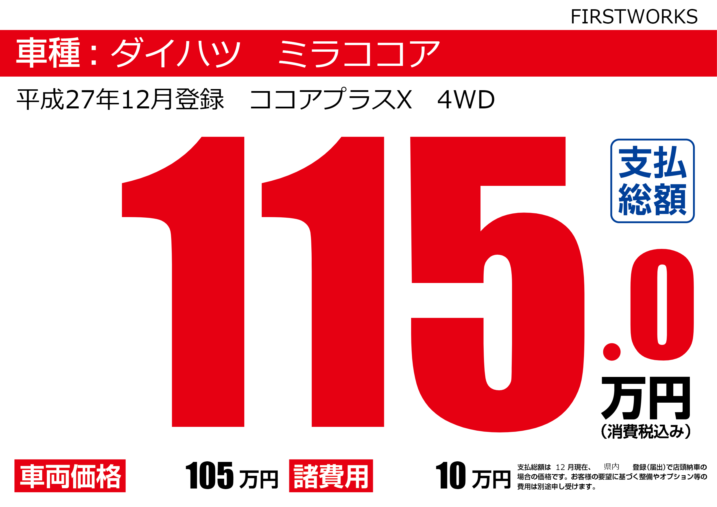 | 車名 | ダイハツ ミラココア | グレード ミッション 排気量 |