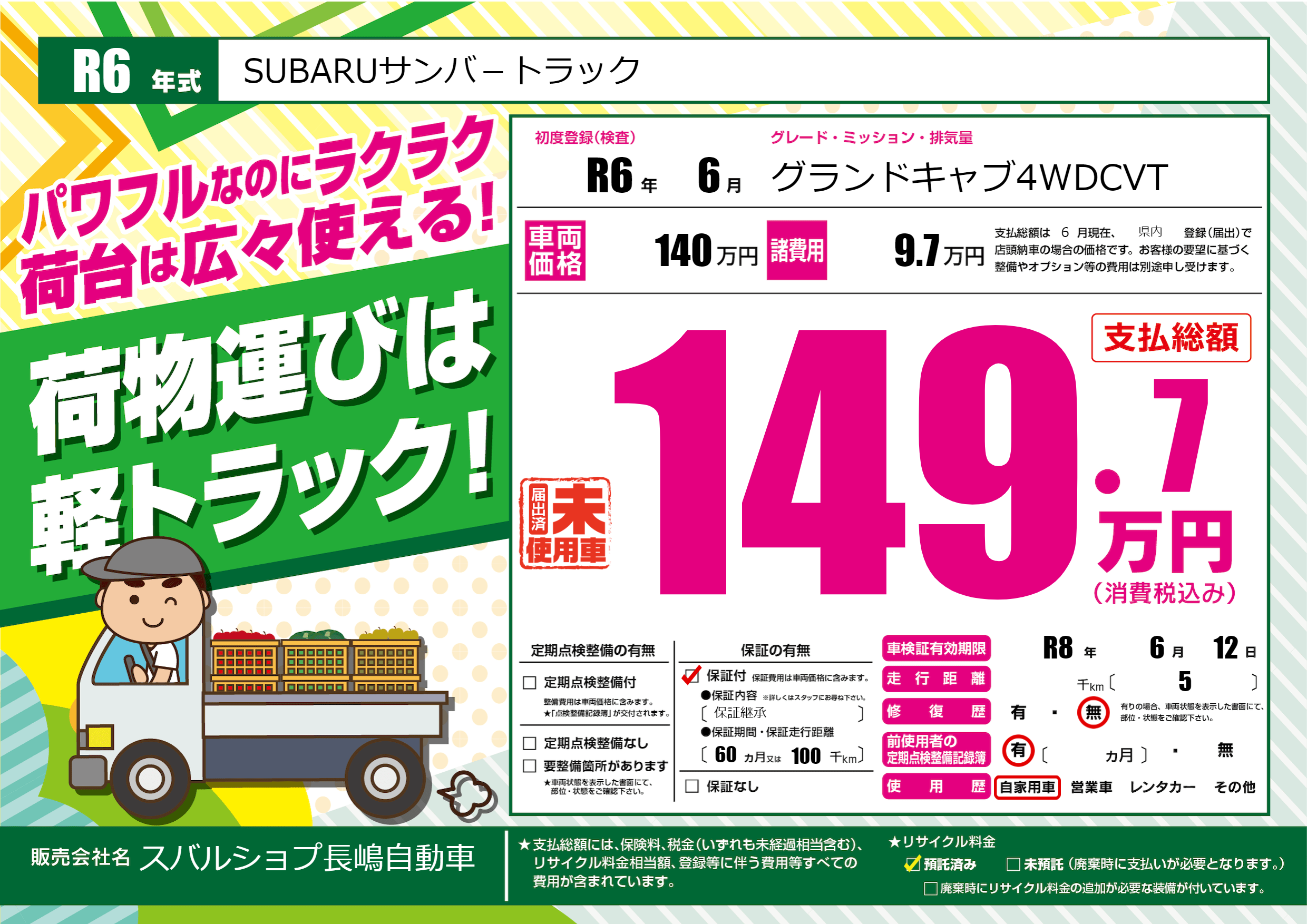 | 車名 | SUBARUサンバ-トラック | グレード ミッション 排気量 |