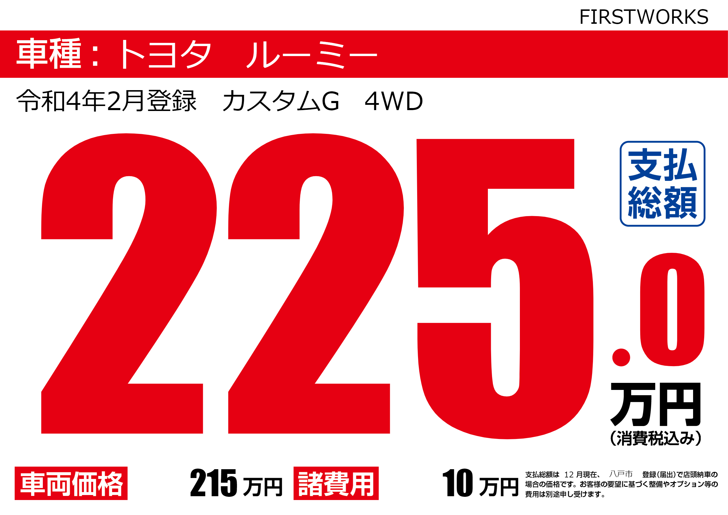 | 車名 | トヨタ ルーミー | グレード ミッション 排気量 |