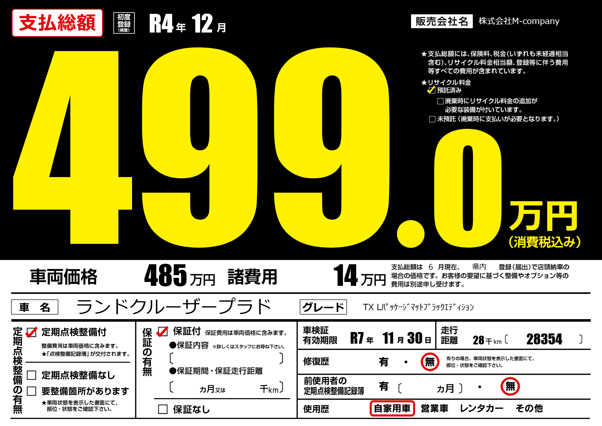 | 車名 | ランドクルーザープラド | グレード ミッション 排気量 |