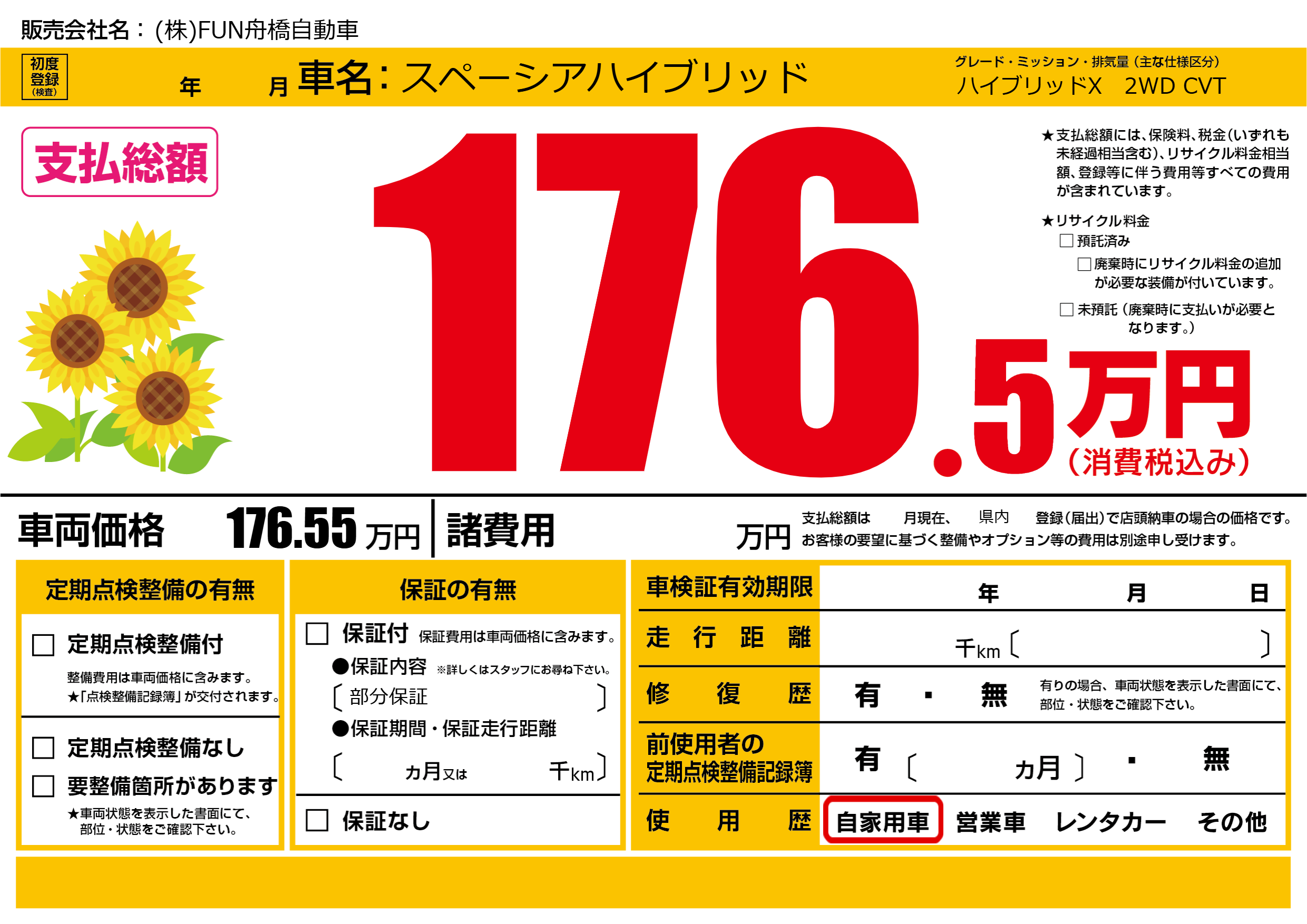 | 車名 | スペーシアハイブリッド | グレード ミッション 排気量 |