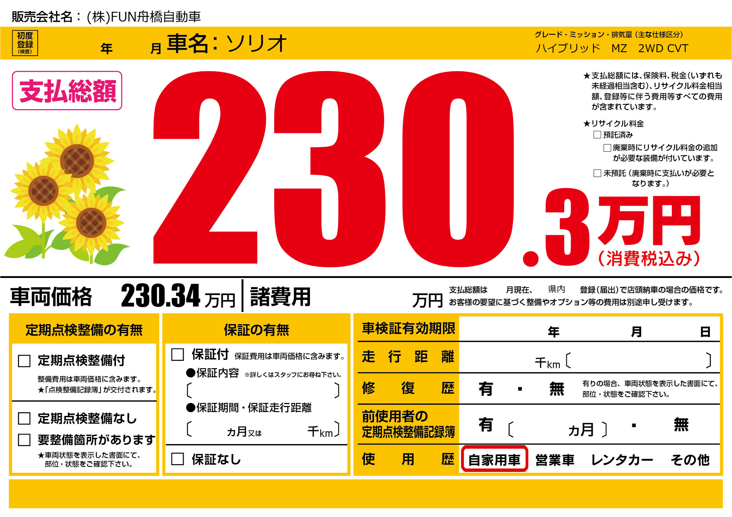 | 車名 | ソリオ | グレード ミッション 排気量 |