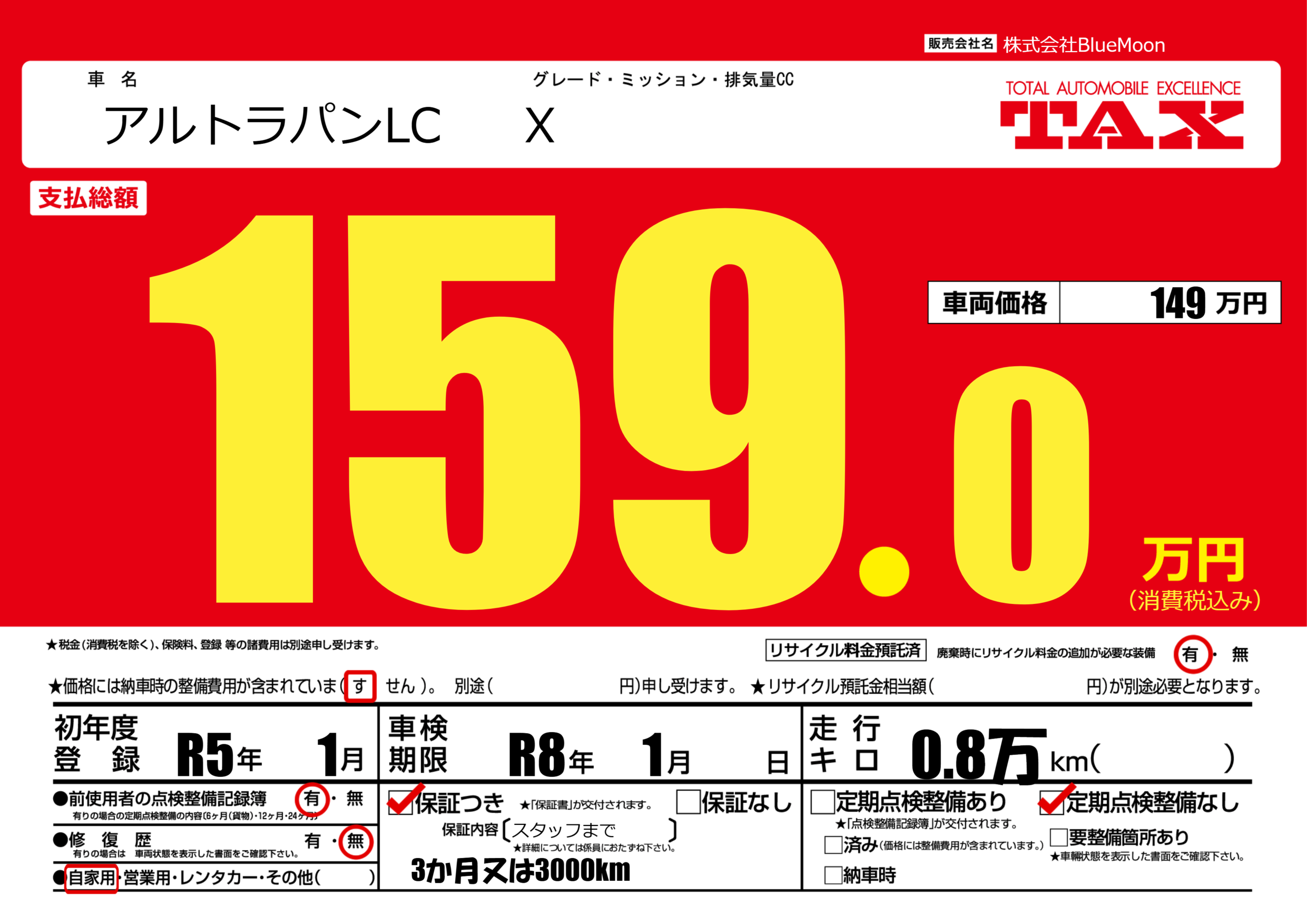 | 走行キロ | - | 初年度登録 | R5年1月 |
