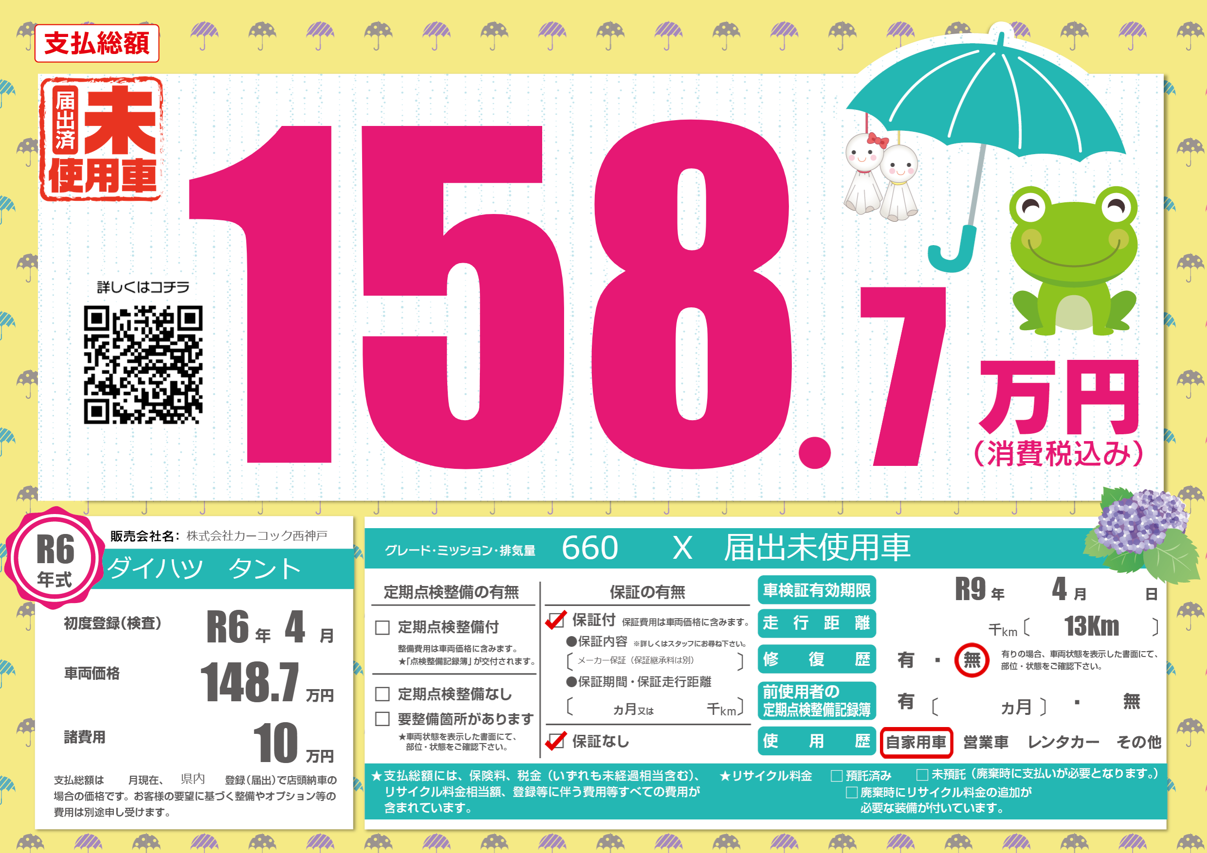 | 走行キロ | - | 初年度登録 | R6年4月 |
