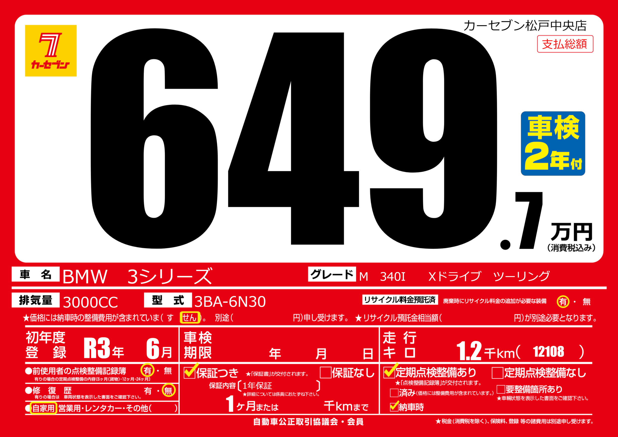 | 走行キロ | 0.1万km | 初年度登録 | R3年6月 |