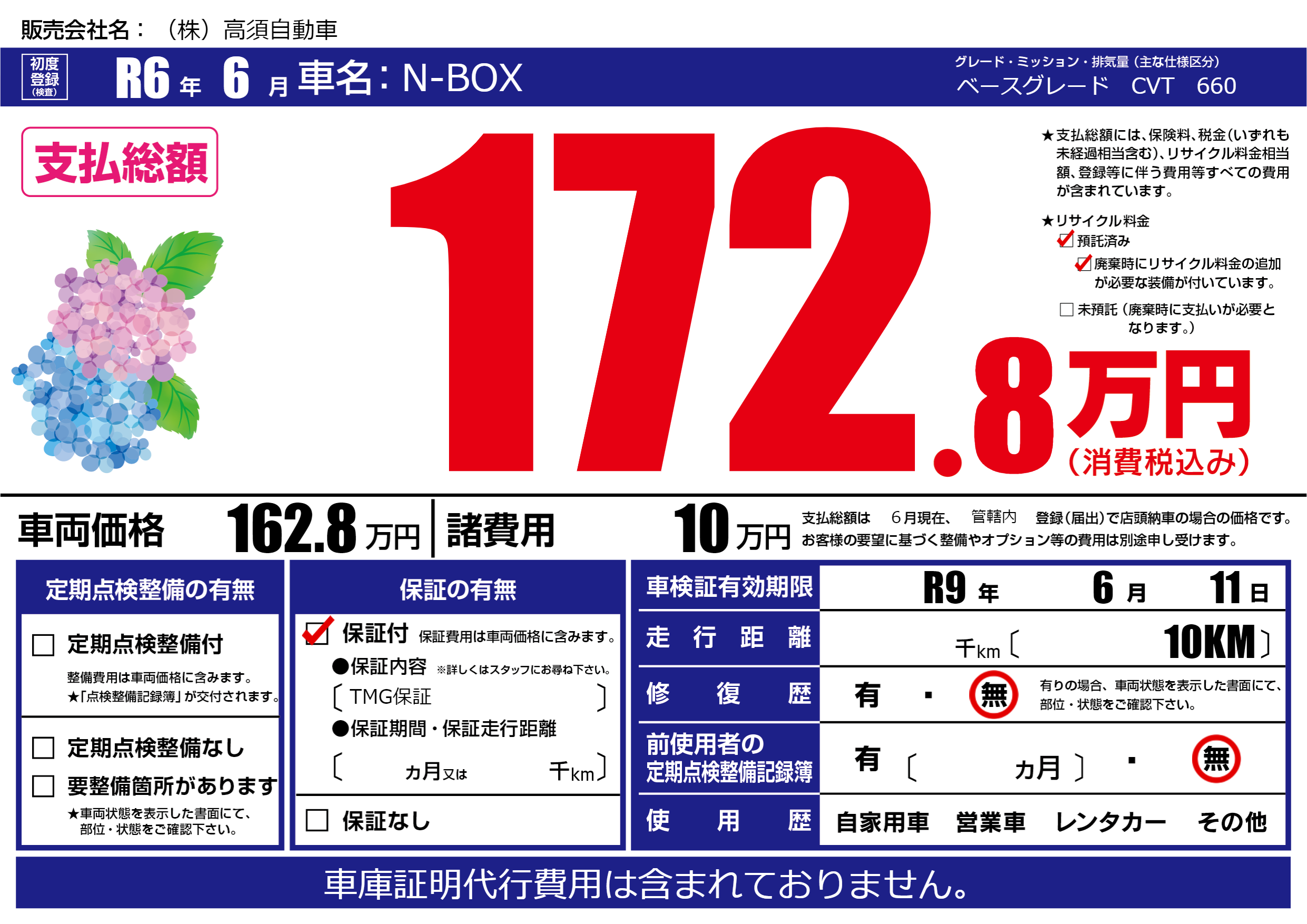 保証付き 保証内容(TMG保証) ---ヶ月または()千kmまで |