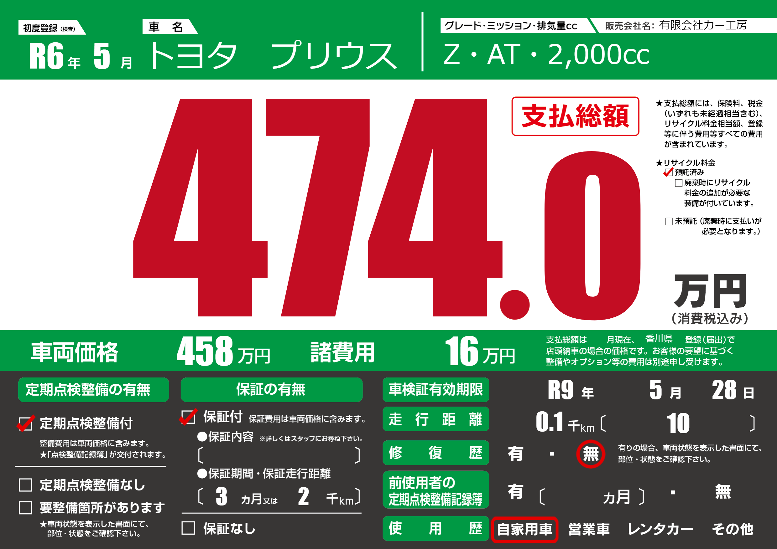 | 車名 | トヨタ プリウス | グレード ミッション 排気量 |