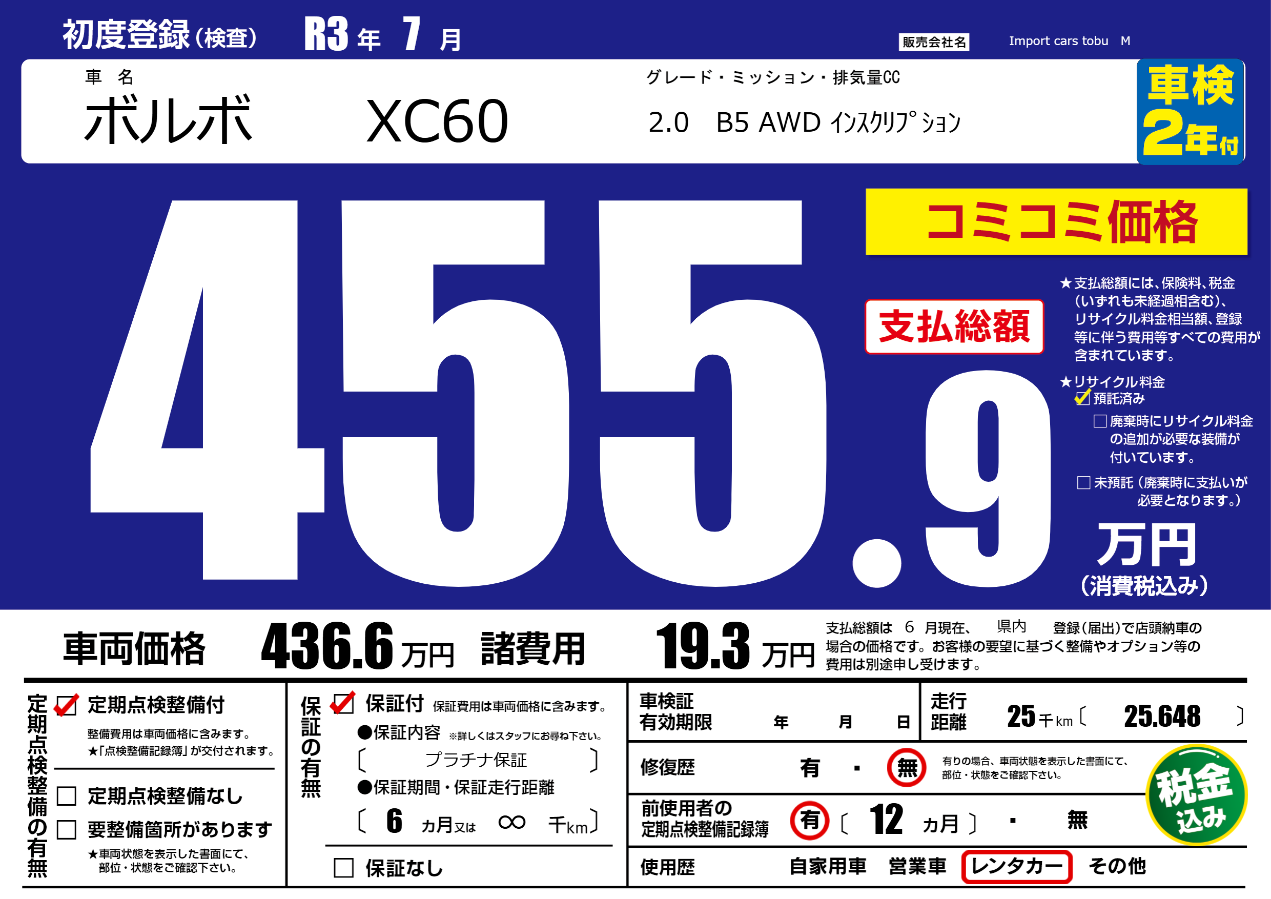 | 定期点検整備 | 定期点検整備あり | ||