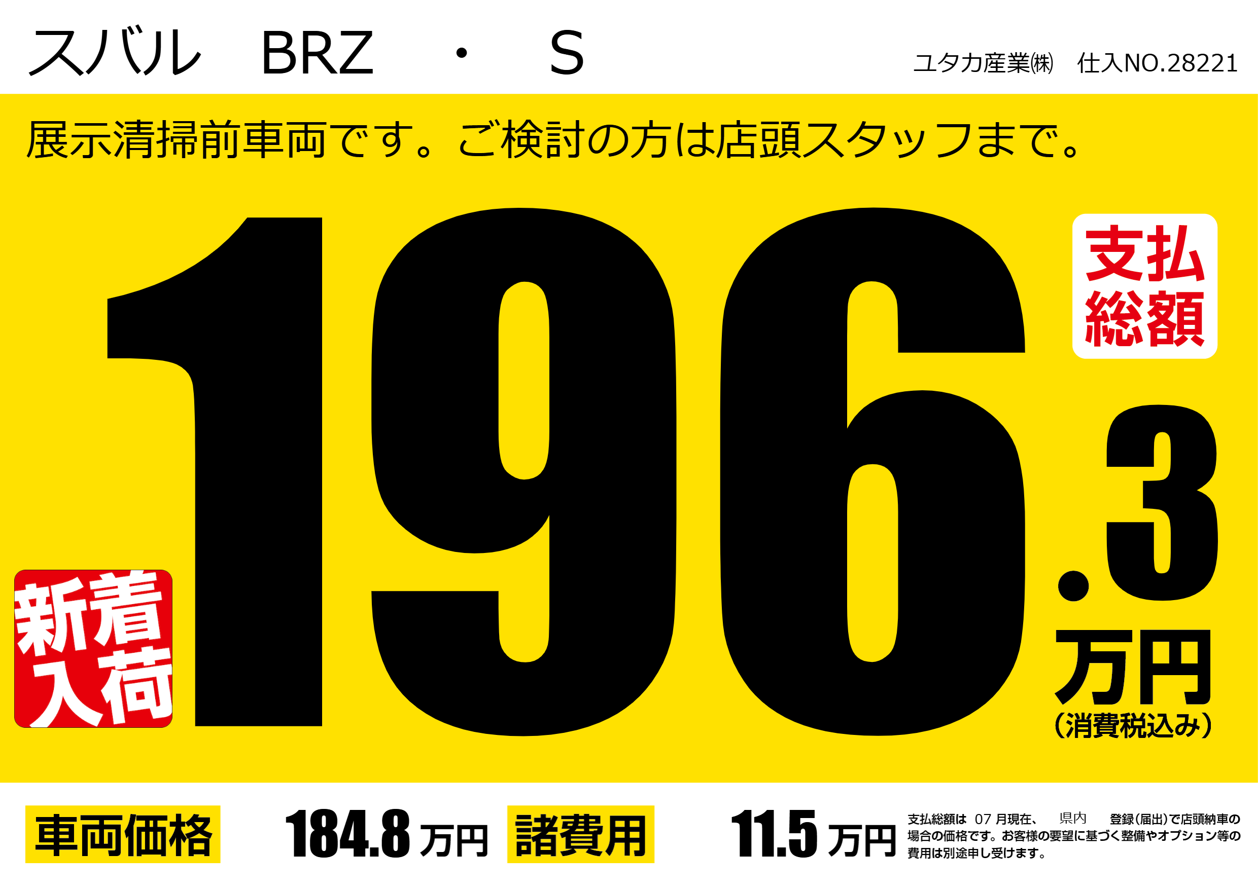 展示清掃前車両です。ご検討の方は店頭スタッフまで。 |