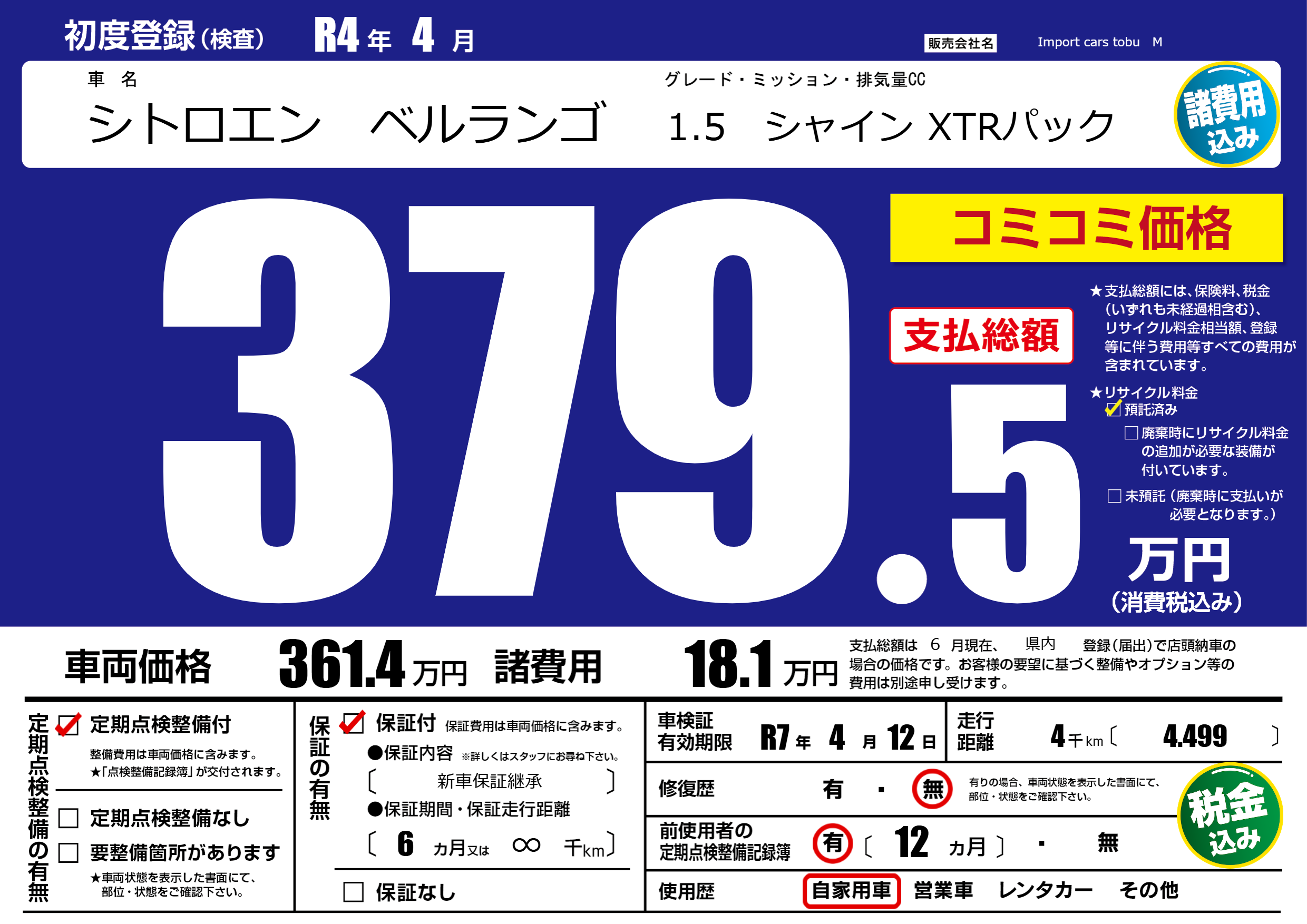 | 車検制限 | R7年 4月 12日 | ||