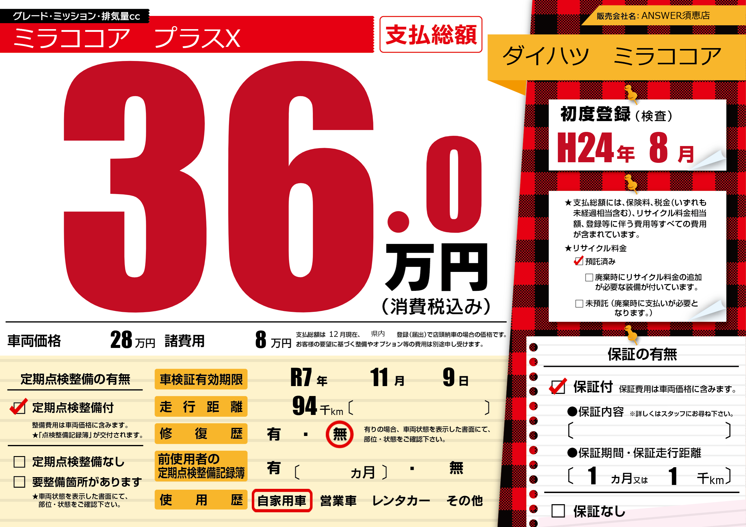 初年度登録 H24年8月